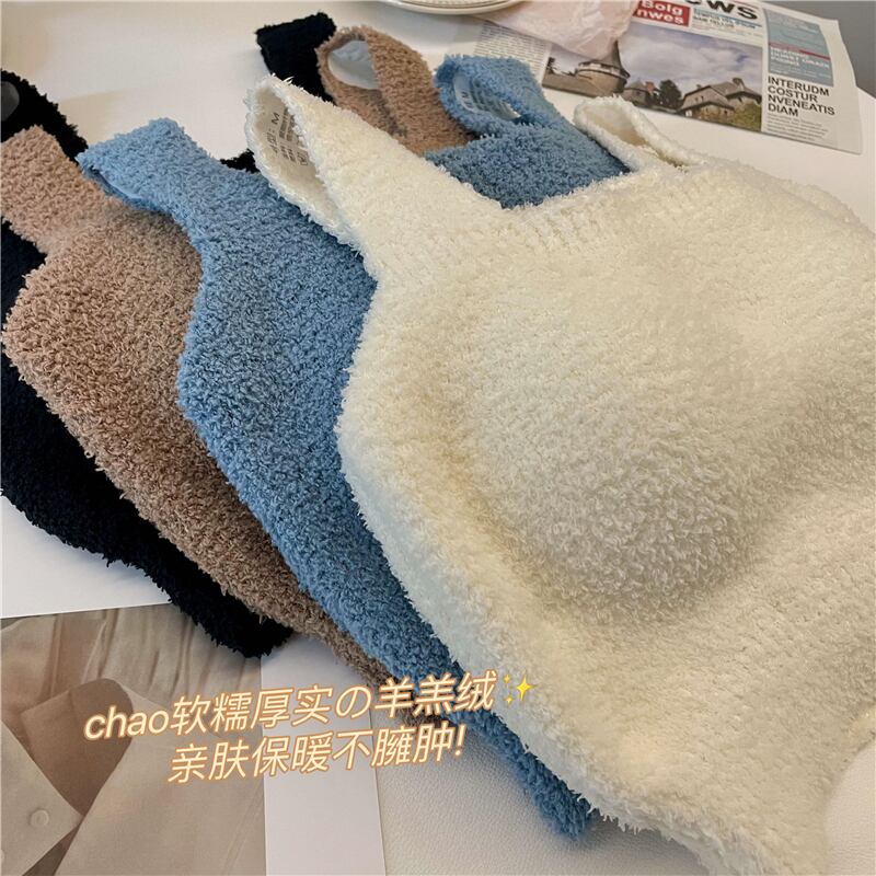 胸パッド付きイミテーションカシミアプラスベルベット厚手のキャミソール女性の春と秋2023新しいオールマッチボトリングシャツ下着イン スプリング 春物 オータム 秋物 0921947009952166