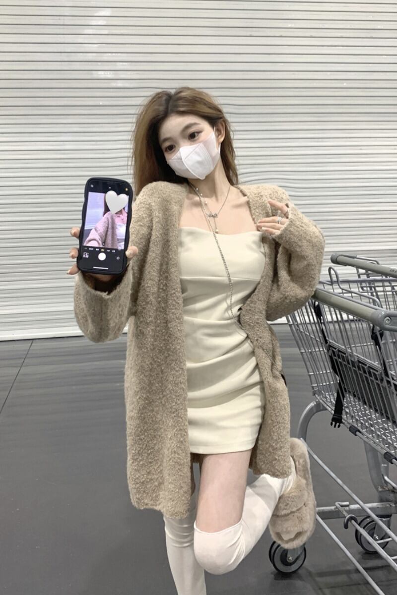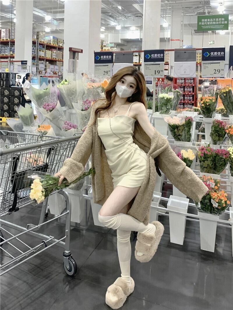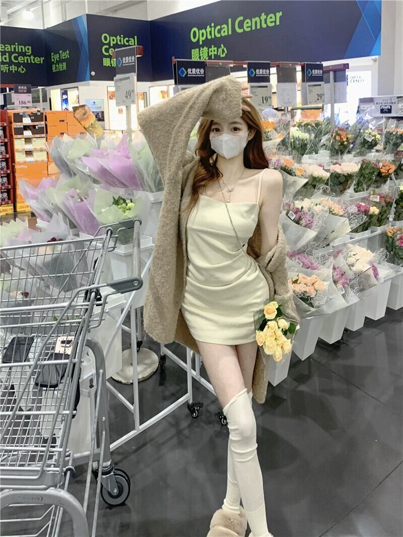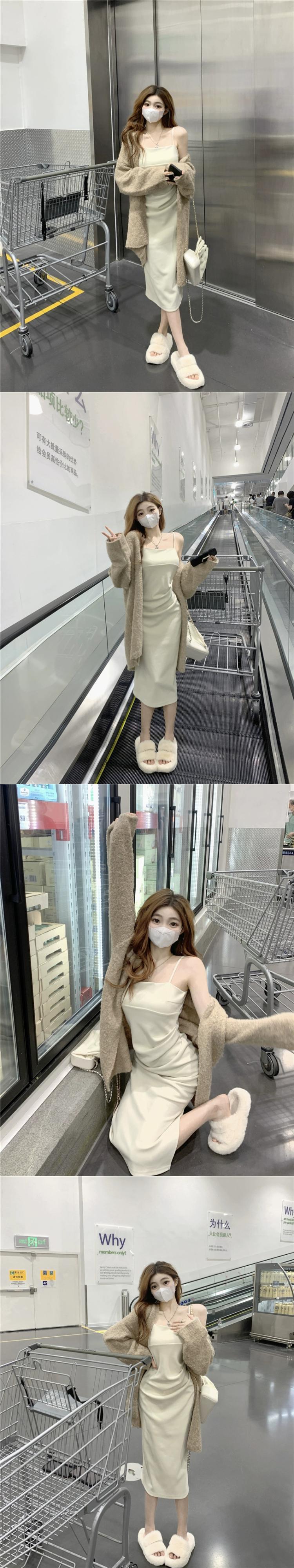 純粋な欲望スーツ女性ゆるい怠惰なスタイル長袖セーターコートプリーツスリットストラップドレス 2 点セット ロング 0921994774546177