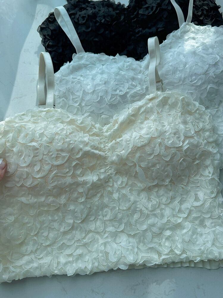 ホワイトレースフラワーアウター 胸パッド付き キャミソール レディース 2023春新作 ショート丈インナートップ スプリング 春物 フラワーデザイン 0921940820148649