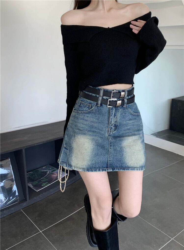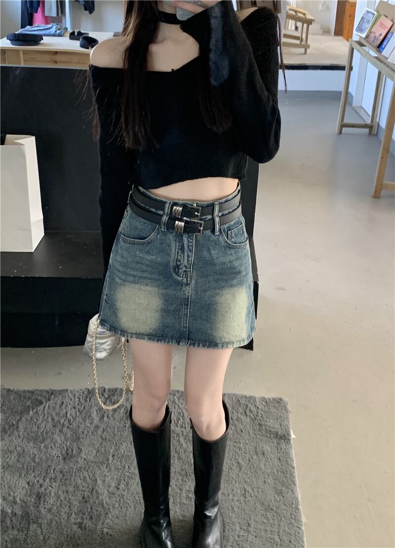ウエスト痩身ベルトスカートレディース 2023 夏の新しいオールマッチデザイン感の抗光 A ラインデニムスカート サマー 夏物 ハーネス Aライン 0921915430439309