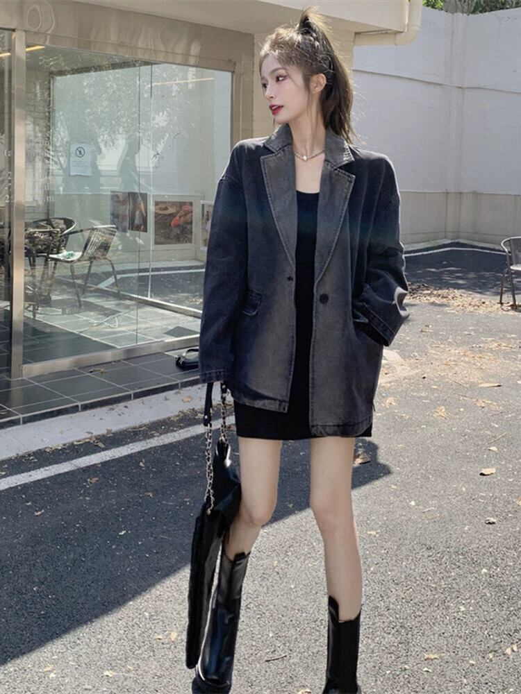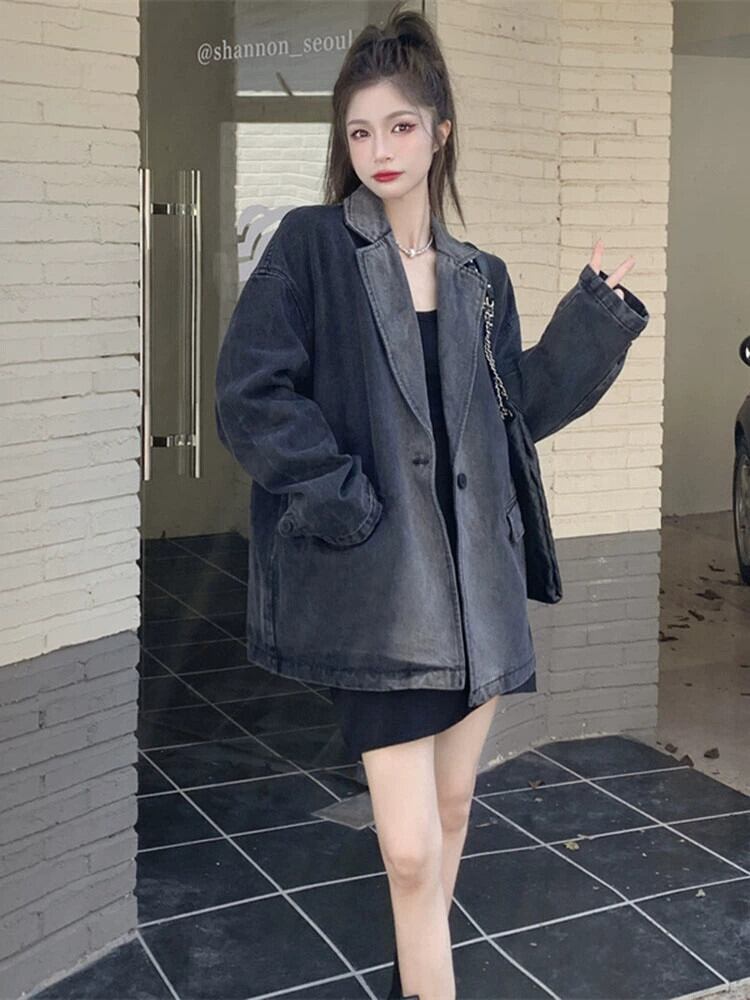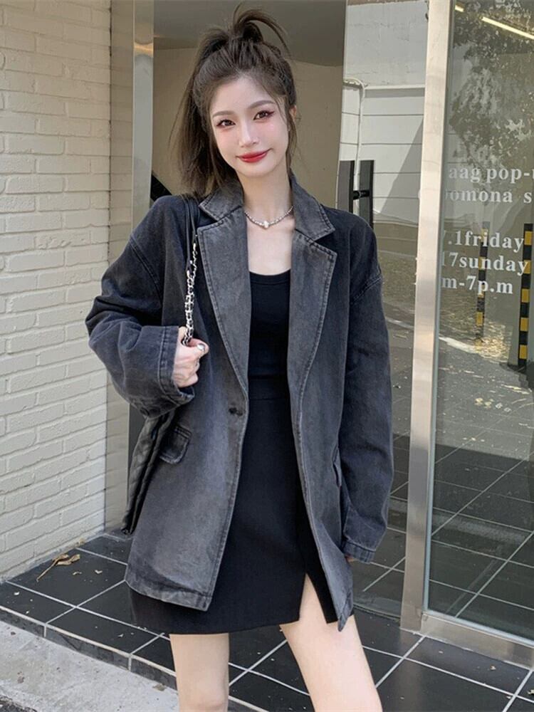 甘くてクールなスタイルのデザインデニムジャケット女性 2023 春の新しい気質スーツの襟緩いオールマッチスーツジャケット 大人ガーリー スウィート キュート カジュアル スプリング 春物 0921977665124413