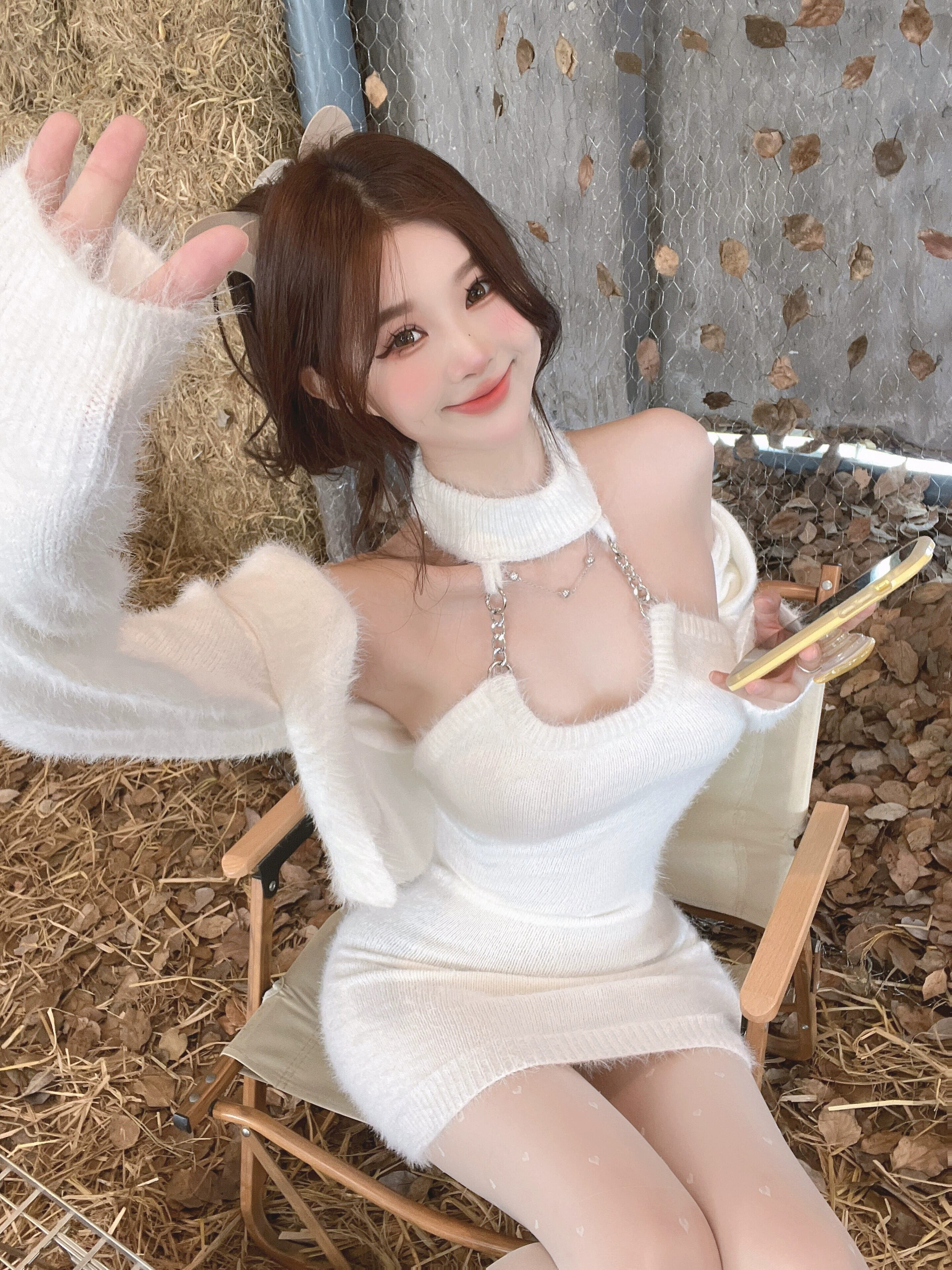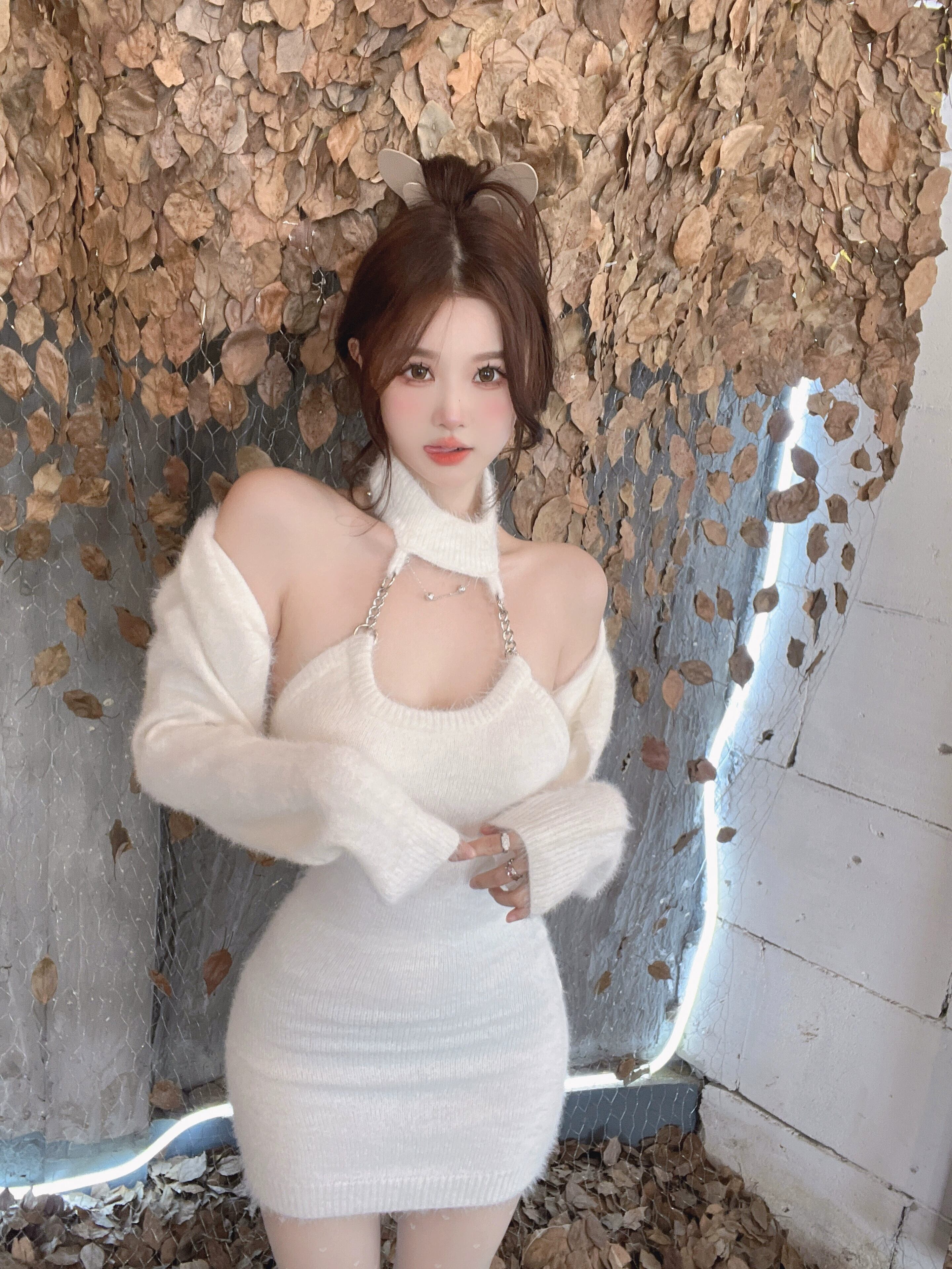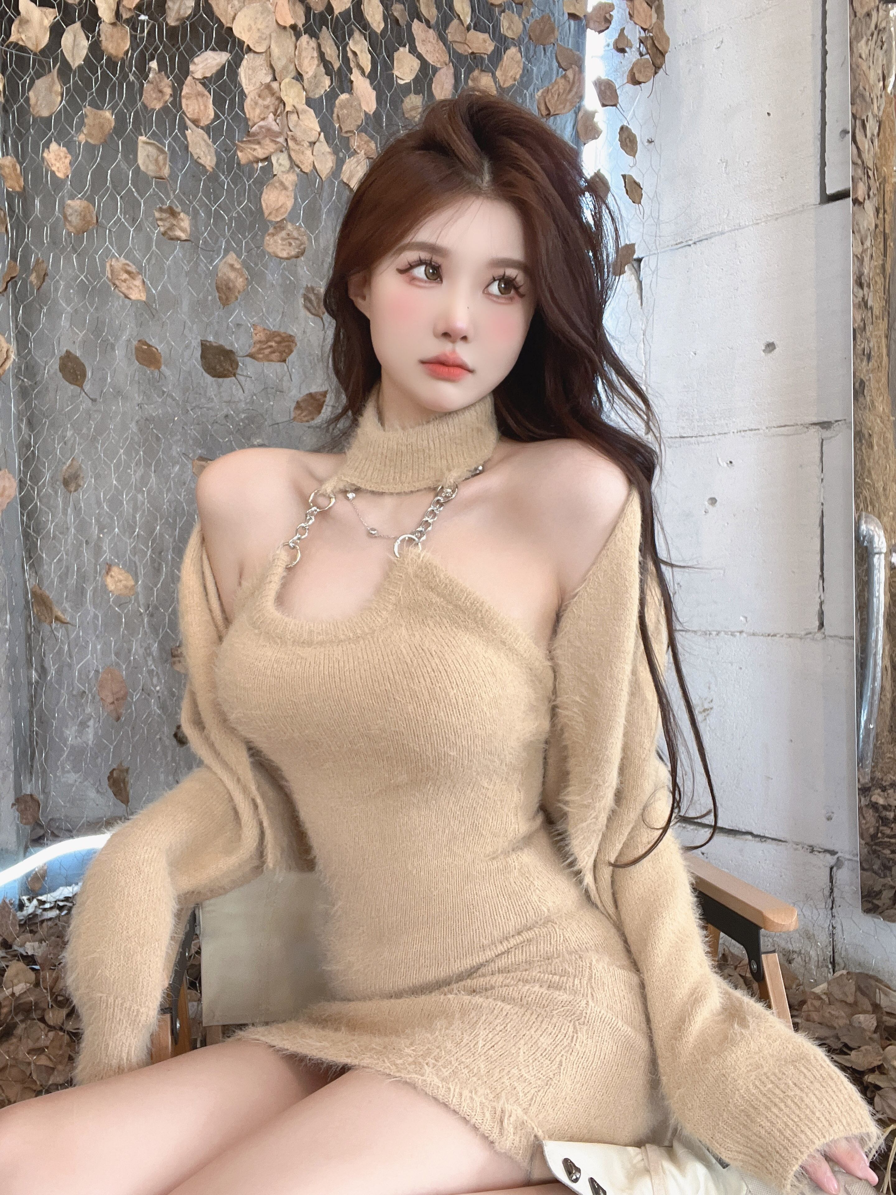 スイート スパイス ガールズ イミテーション ミンク ヘア スーツ レディース 春スリム ハンギング ネック バッグ ヒップ ニット ドレス ショート コート 2 点セット 大人ガーリー スウィート キュート カジュアル スプリング 春物 0921951067368190