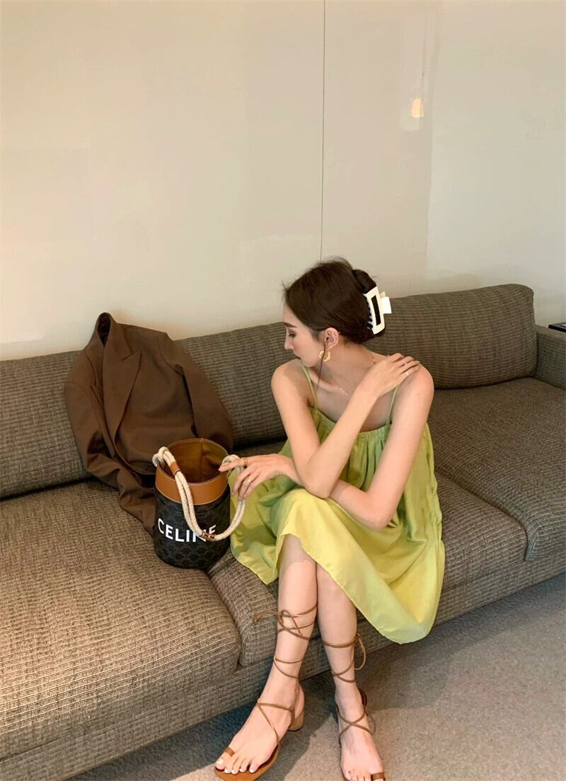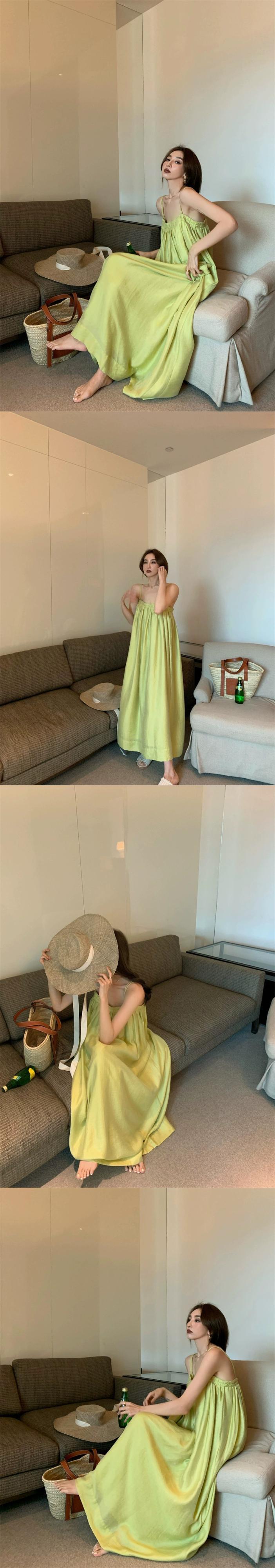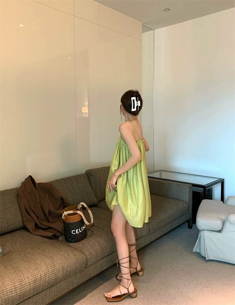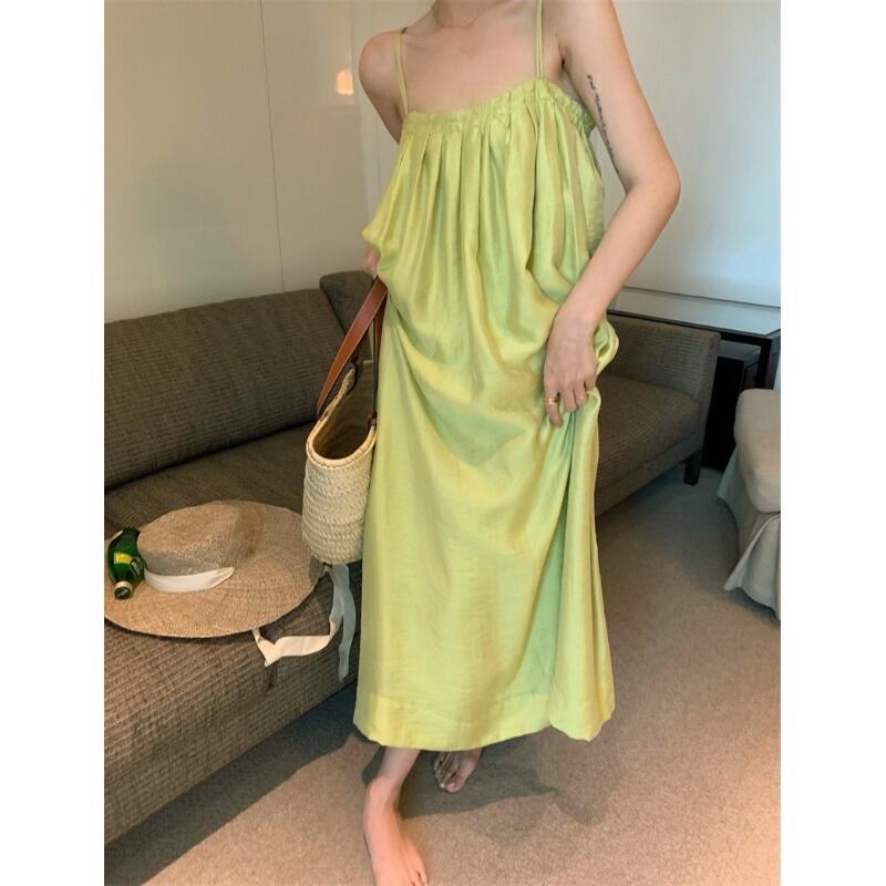 フレンチレトロホリデースタイルスリングドレス女性の夏の2023新しい怠惰なスタイルソリッドカラーオールマッチAラインスカート サマー 夏物 092196622363274