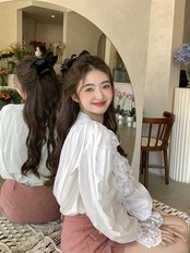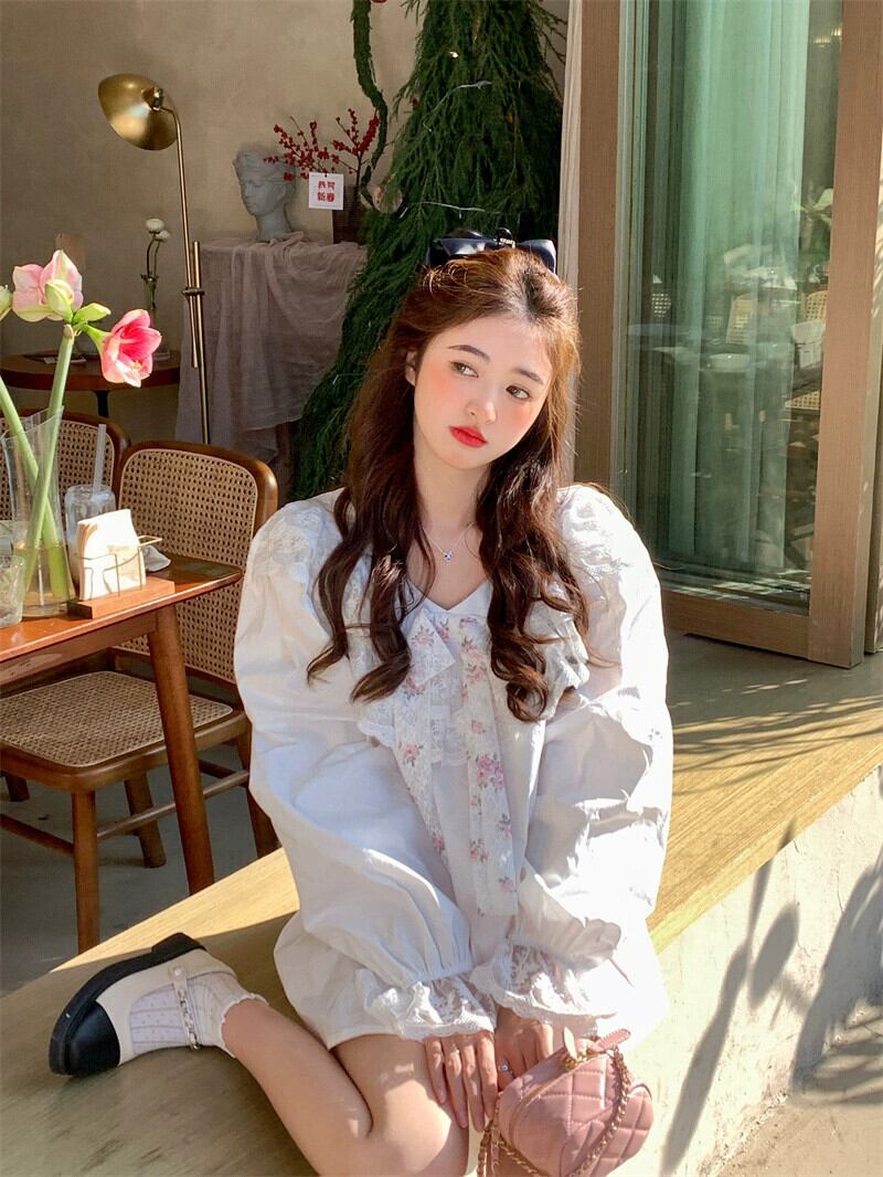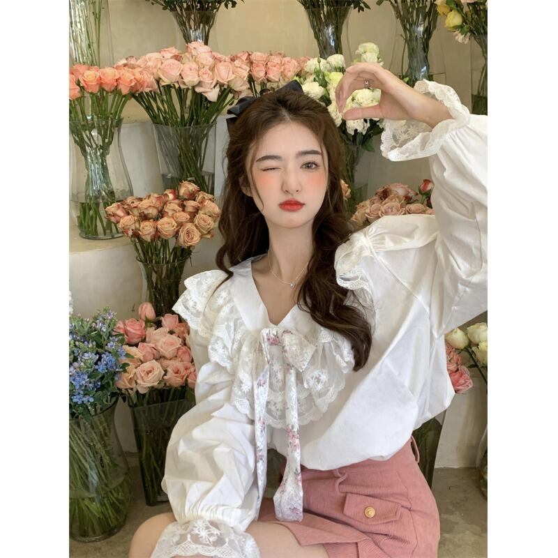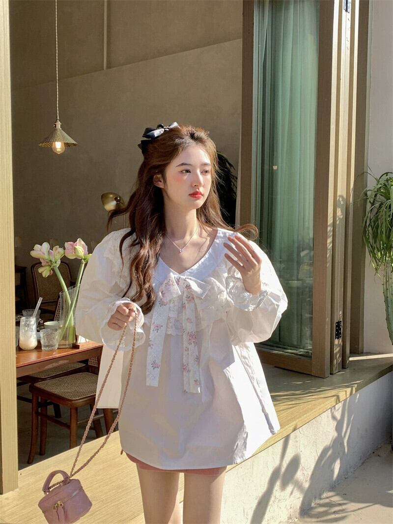 甘いスタイルちょう結びレース長袖シャツ女性の夏の 2023 新しいオールマッチルーズスリムシャツトレンド ロング リボン 大人ガーリー スウィート キュート カジュアル サマー 夏物 0921942518697982