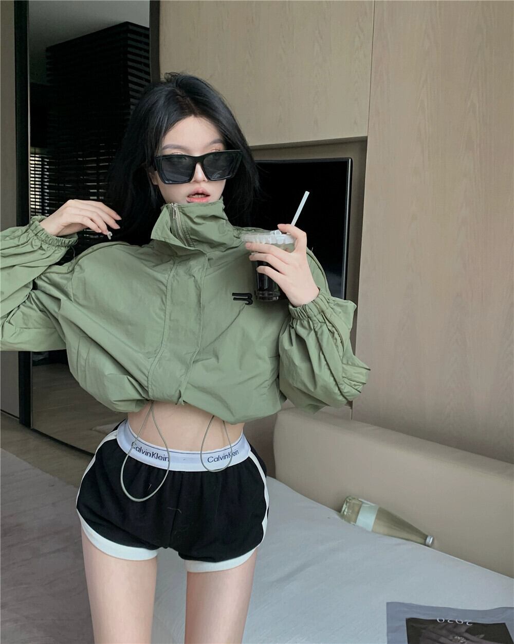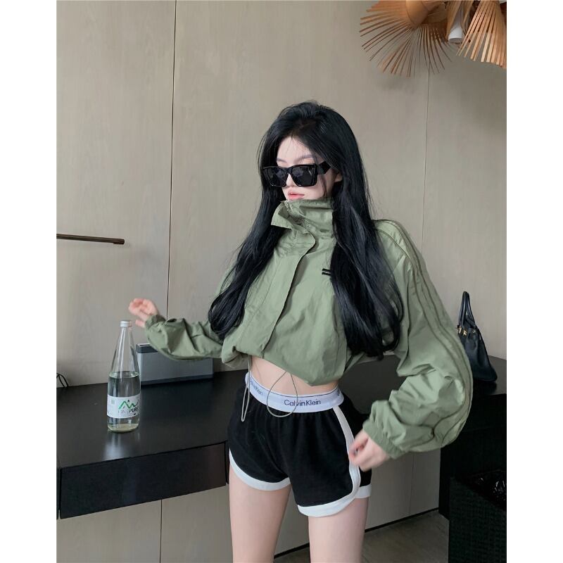 アメリカンレトロスタンドカラーコントラストカラージャケットレディース2023春新デザイントレンディなゆったりとした薄手のオールマッチカーディガン スプリング 春物 0921940436559025