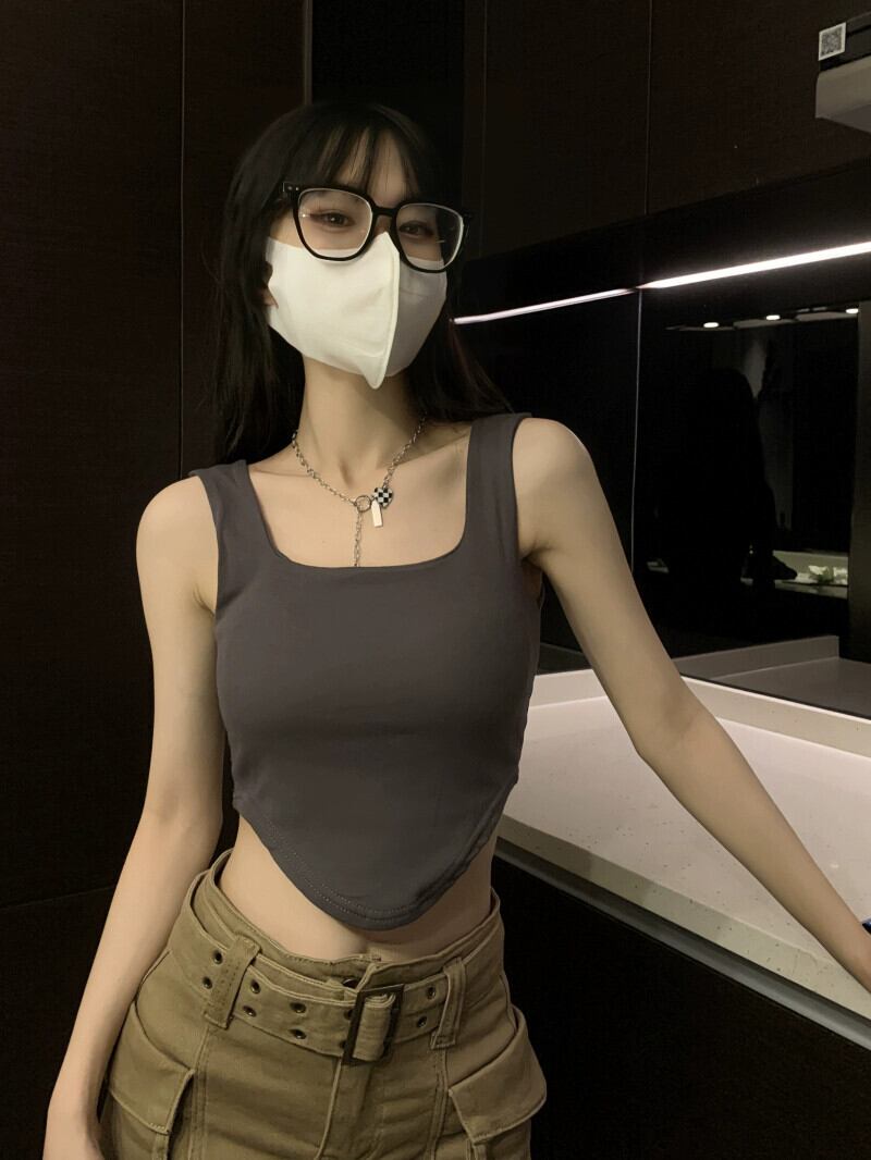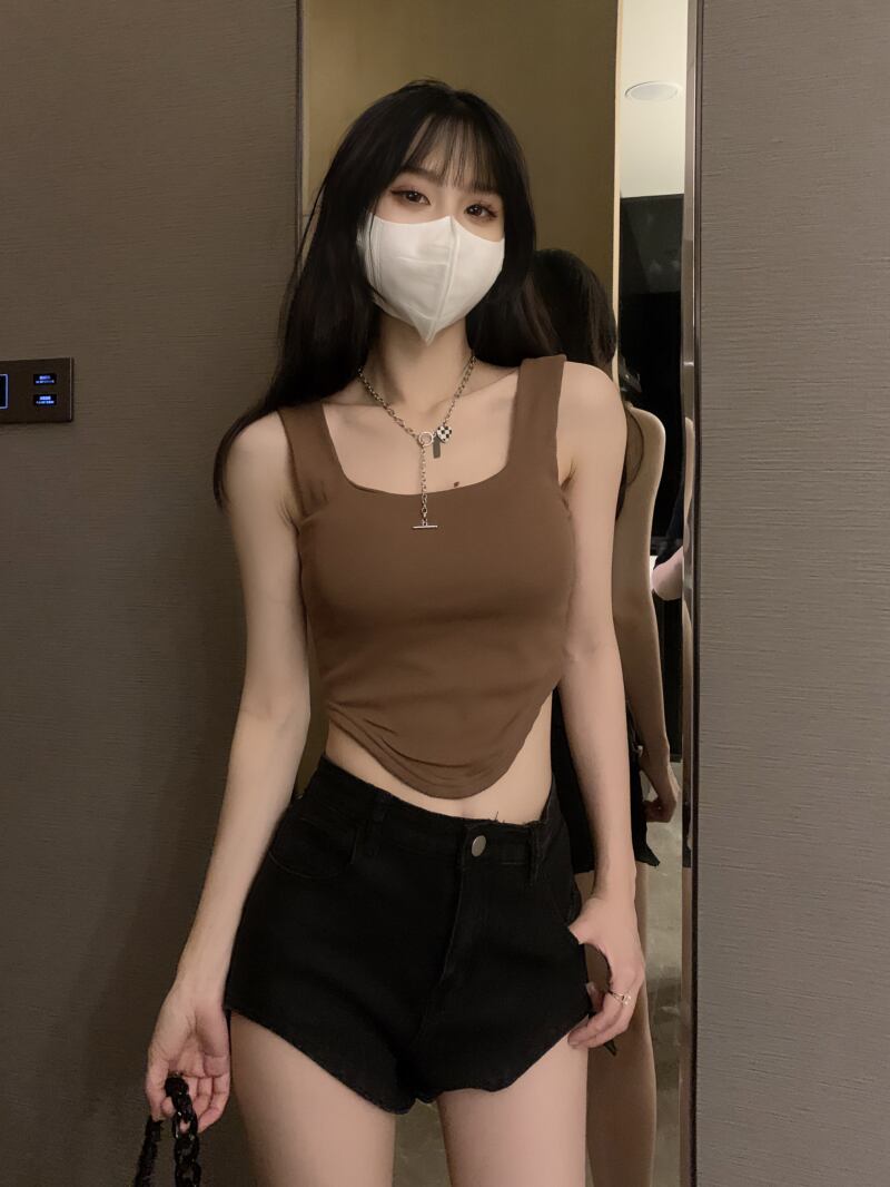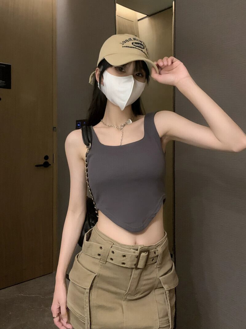 不規則なデザインのキャミソールの女性の 2023 年夏の新しいスタイルの胸パッド付きショート セクションオールマッチ アウター トップのバージョン サマー 夏物 0921949168788684