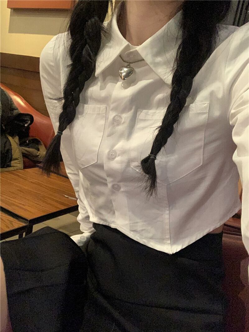甘いデザインショート白長袖シャツ女性の夏の 2023 新しいオールマッチウエスト痩身カーディガンシャツ ロング ホワイト 大人ガーリー スウィート キュート カジュアル サマー 夏物 0921946855500426