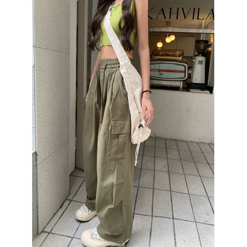 アメリカ風フライドストリート巾着カジュアルパンツレディース2023年初春新作オールマッチデザイン感ハイウエストスリムワイドレッグオーバーオール ハイウェスト スプリング 春物 0921918821704879