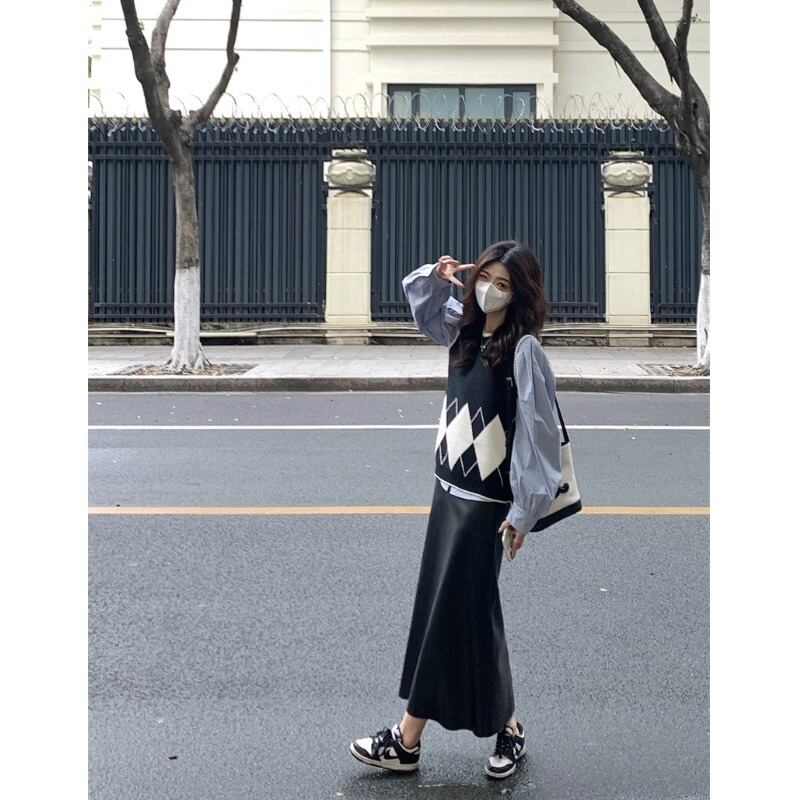 バージョンの黒菱形ニットベストベストレディース春 2023 新しいカレッジスタイルレイヤードラウンドネックベストトップ レッド ブラック スプリング 春物 Oネック 0921979053594539