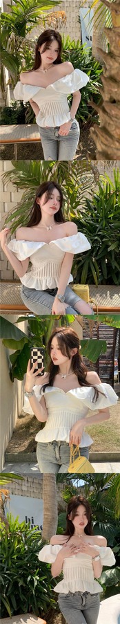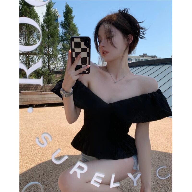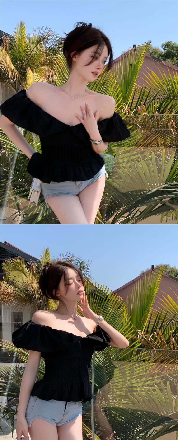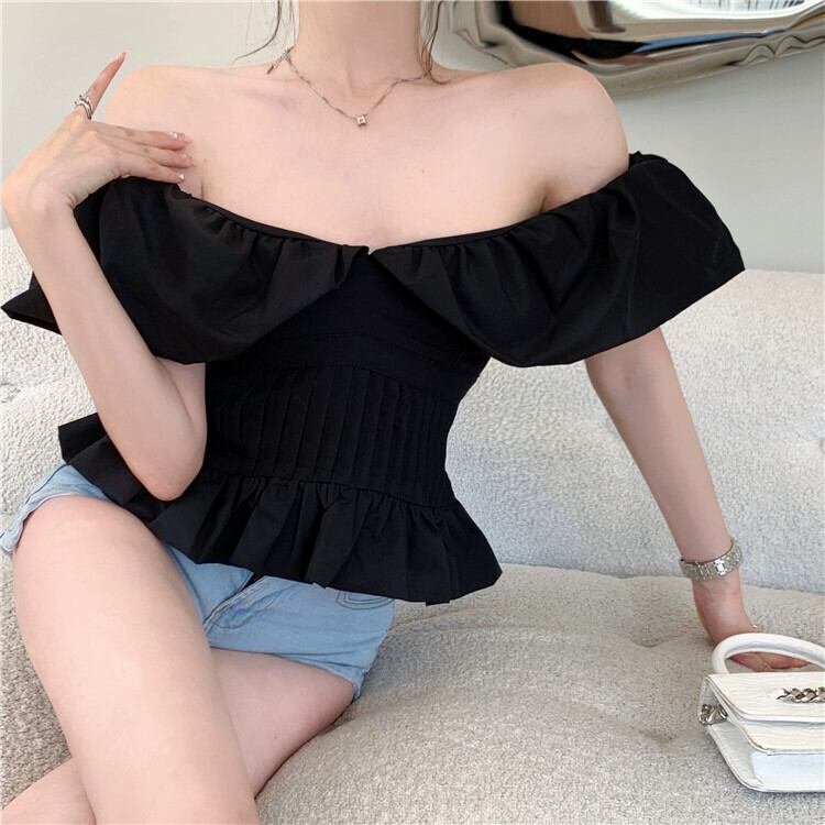 シックなワンショルダー パフ スリーブ シャツのバージョンの女性の 2023 夏の新しいショート セクション スリム スリム ボトム シャツ サマー 夏物 092198928141052