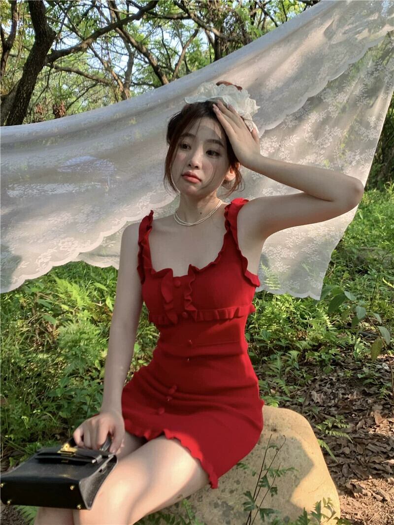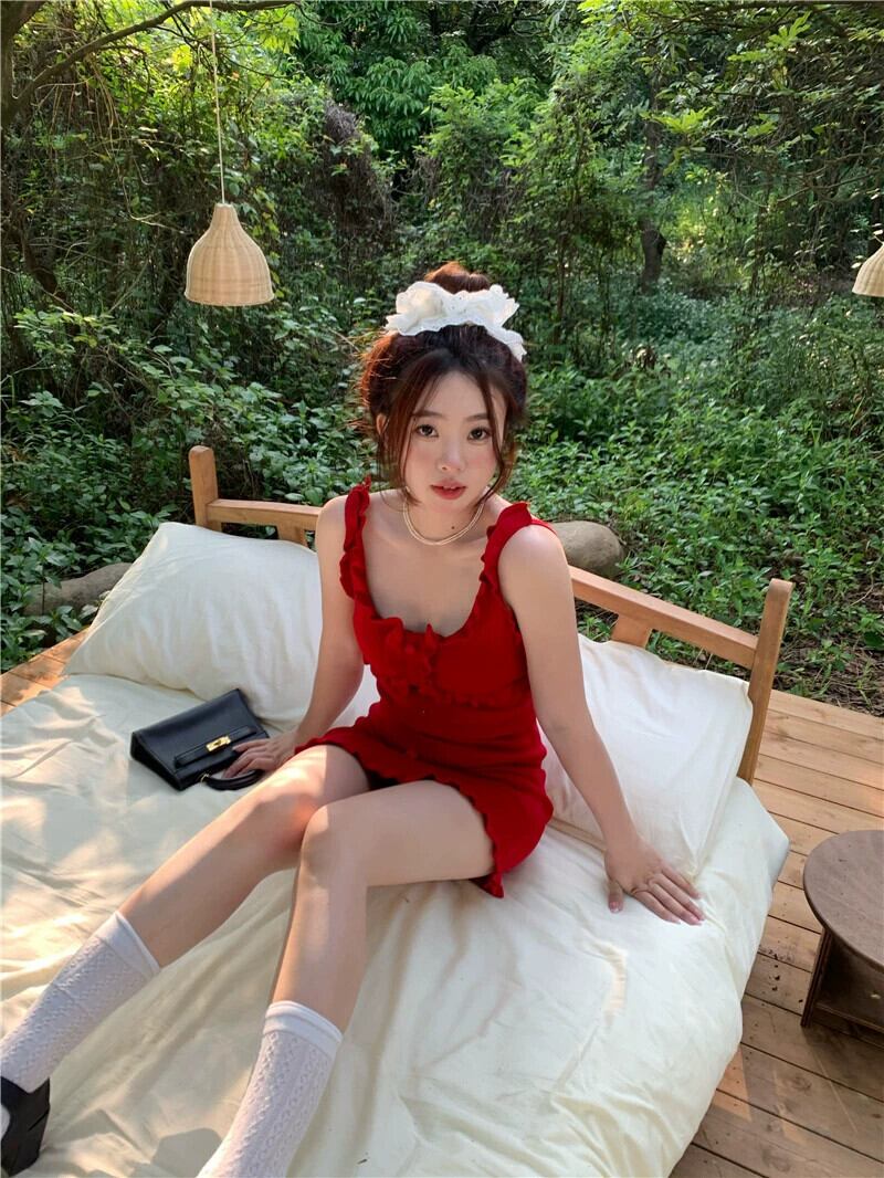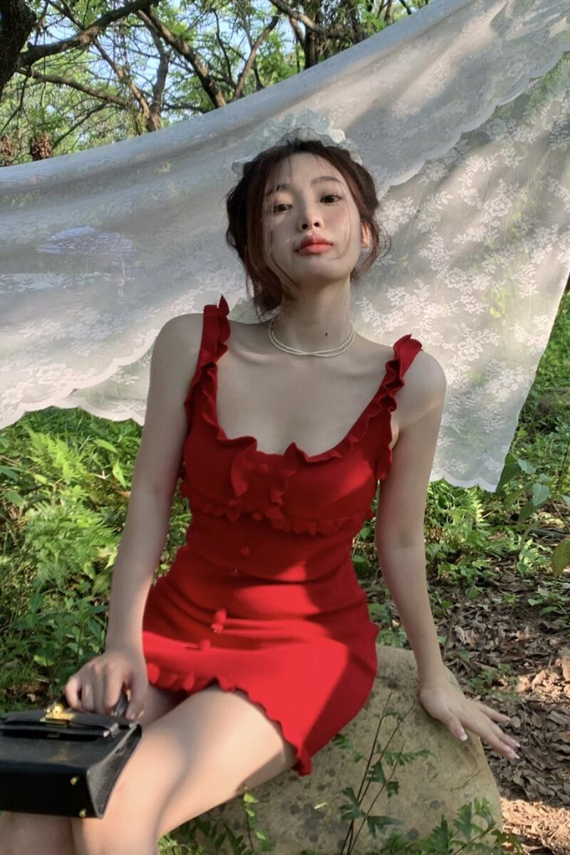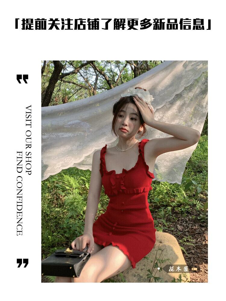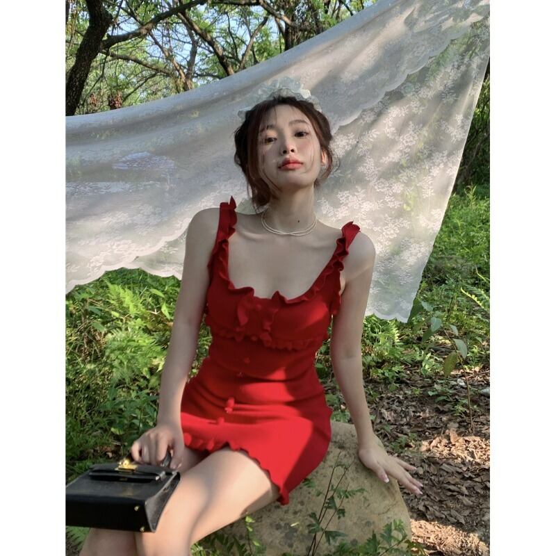 純粋な欲望ニットスリングドレス夏レッドスパイスガール木製耳セクシーなスリムスリム薄型パッケージヒップショートスカート サマー 夏物 0921918387077932