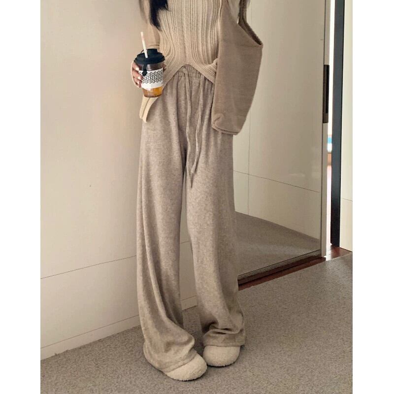 バージョンのルーズワイドレッグパンツ女性の春と秋の2023新しい巾着カジュアルパンツハイウエストスリムストレートチューブフロアモップパンツ ハイウェスト スプリング 春物 オータム 秋物 0921998114897635