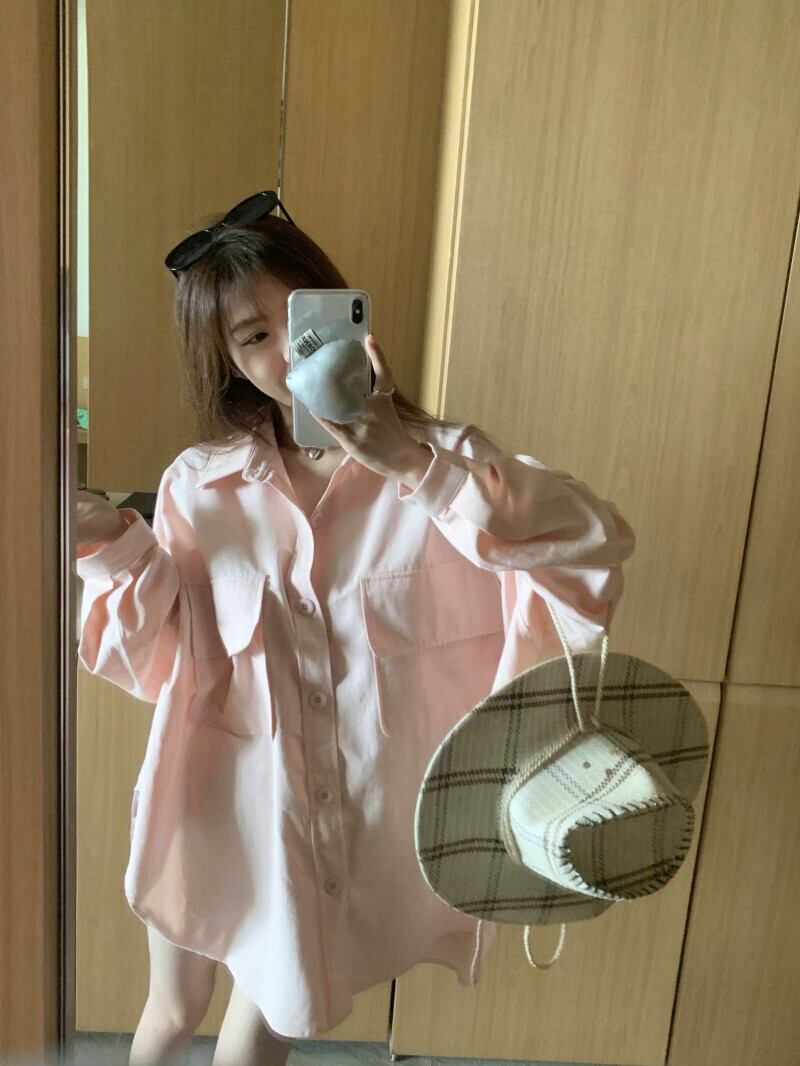 ソルトアンドスイートピンク長袖シャツジャケットレディース2023年夏新作怠惰なスタイルルーズオールマッチシャツ ロング 大人ガーリー スウィート キュート カジュアル サマー 夏物 0921941427593252