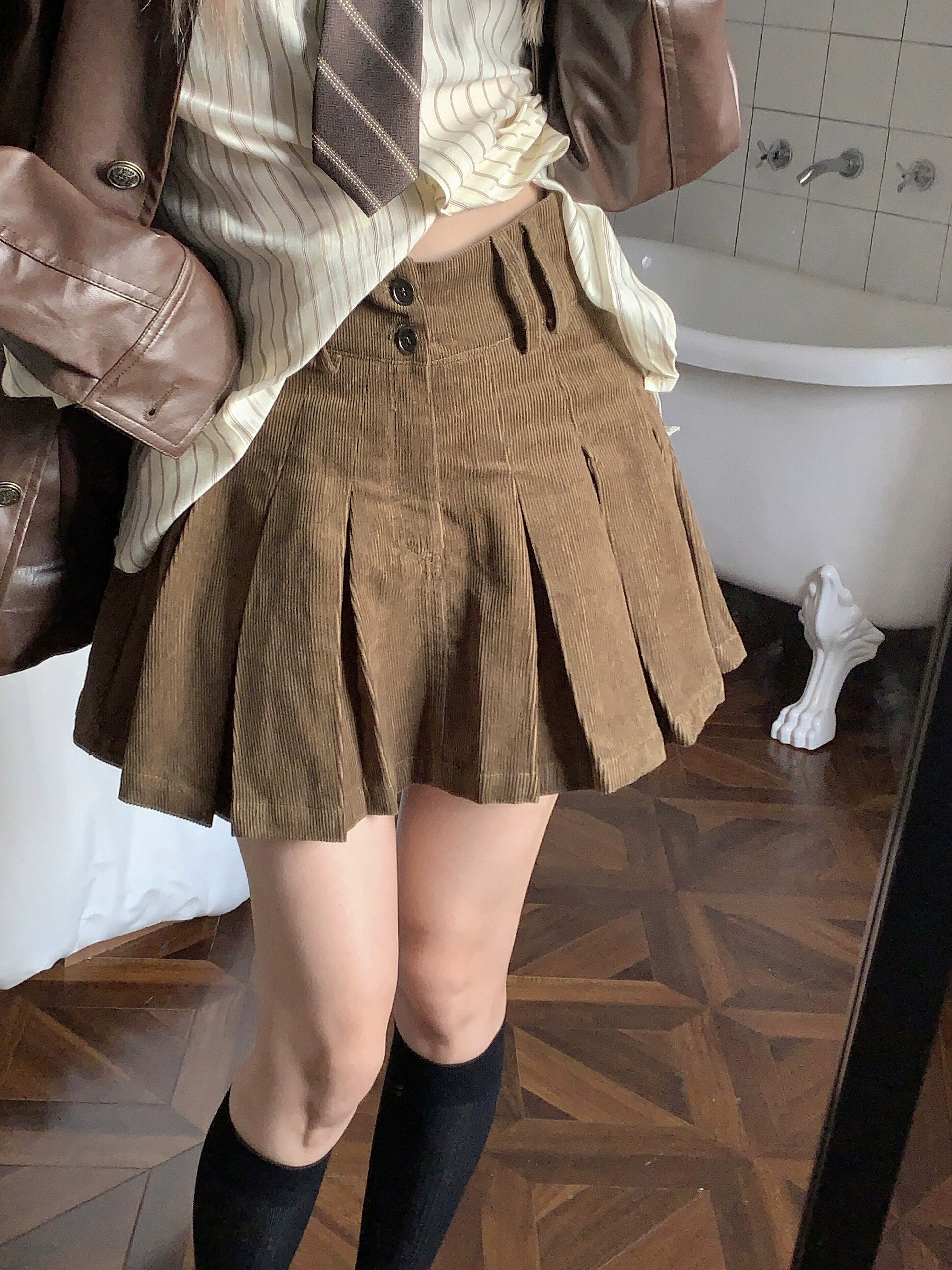 色:革の服,シャツ+ネクタイ,プリーツスカート