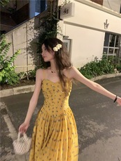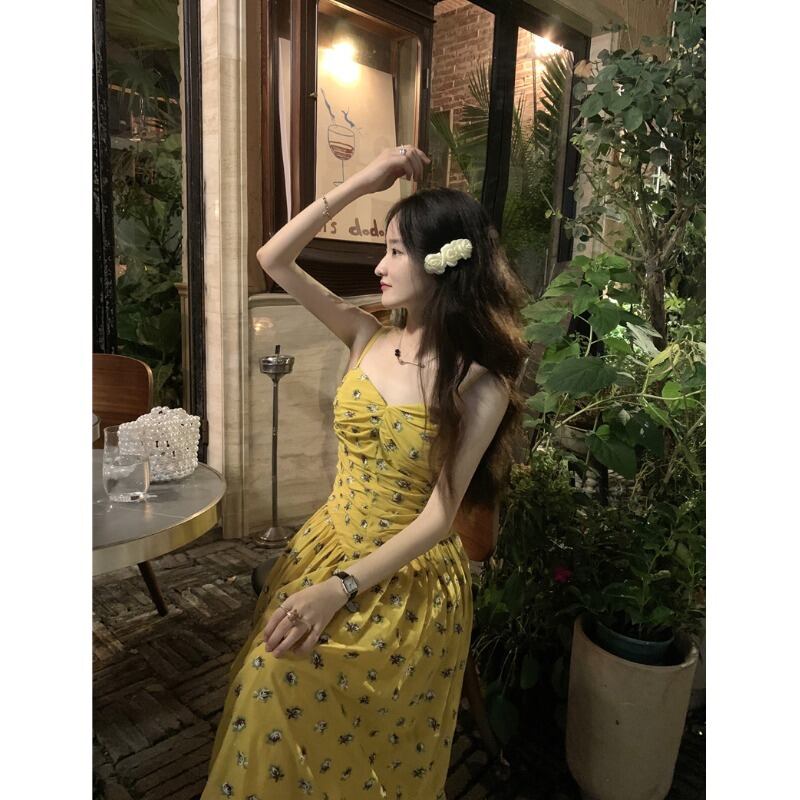 フランスのレトロな気質の優しい風サスペンダードレスの女性の夏の 2023 新しいミッドレングスプリーツウエストスカート サマー 夏物 092194328525594