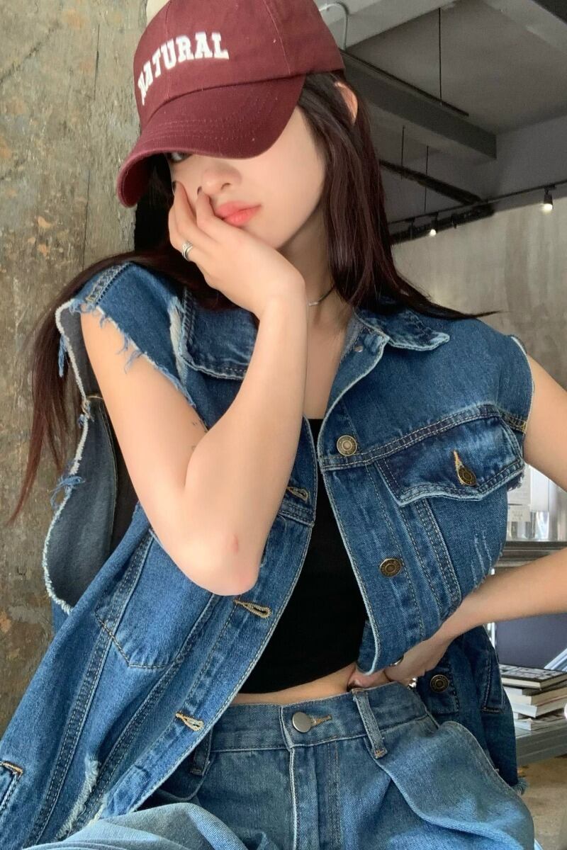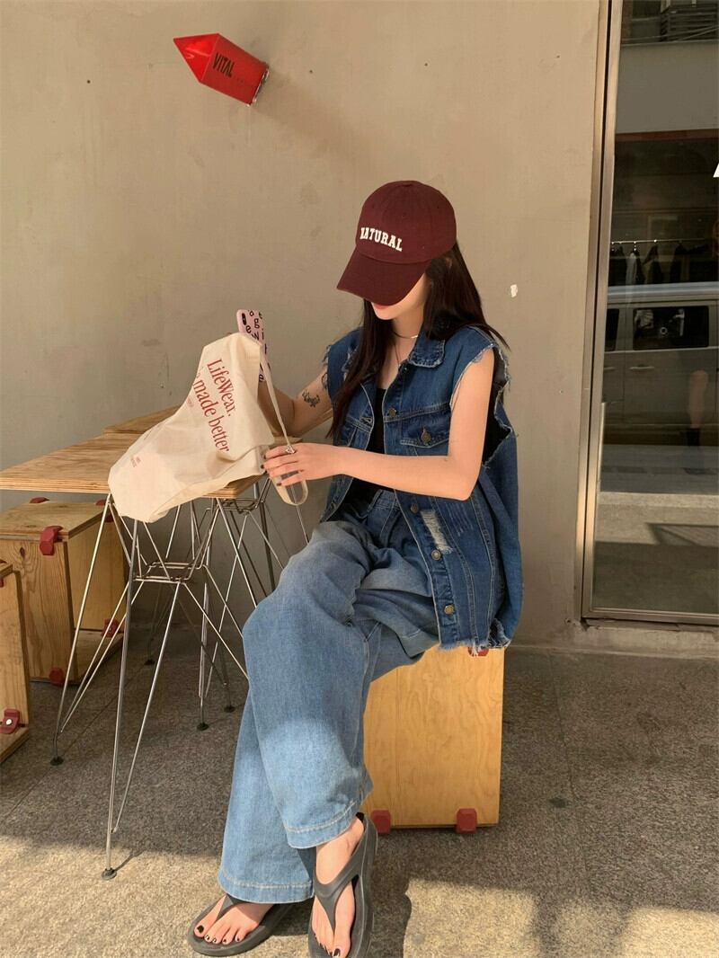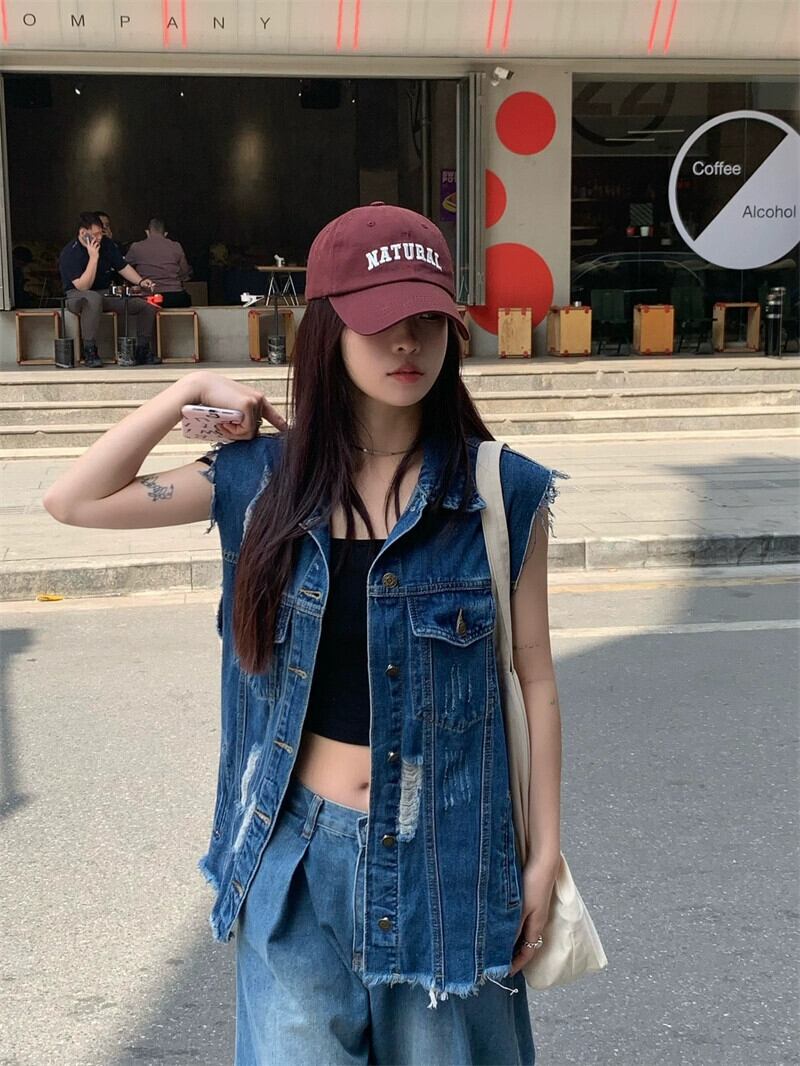 レトロなデザインのリッピングデニムベストジャケット女性の夏 2023 新しいトレンディなリッピングエッジノースリーブベストベスト サマー 夏物 0921935864731139