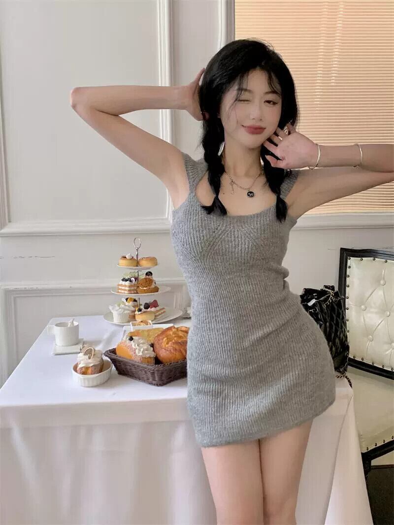 スパイスガールズタイトスリングニットヒップドレス婦人服夏 2023 ウエスト痩身純粋な欲望ショートスカート サマー 夏物 ピュア 0921957833342786