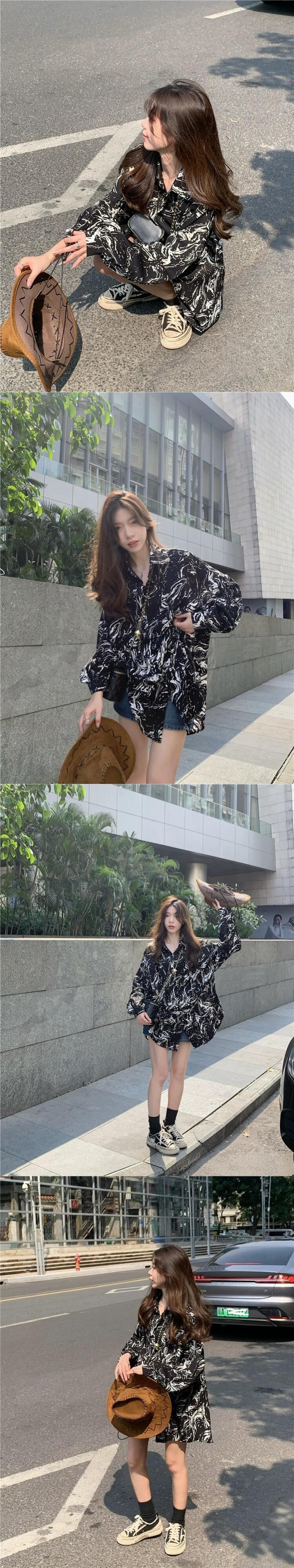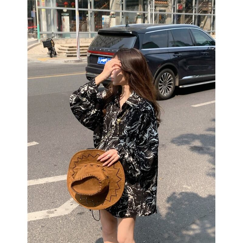 気質レトロな水墨画絞り染めシャツジャケット女性の夏の 2023 新しいミッドレングス怠惰な風ルーズシャツ サマー 夏物 0921999106333434