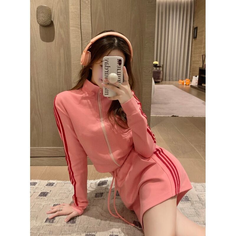 アメリカンスポーツウィンドスーツスカート女性2023夏新作スタンドカラー長袖ジャケットスカートスカート2点セット ロング サマー 夏物 0921925642420705