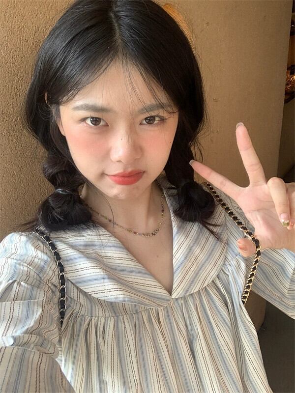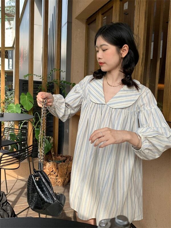甘いスタイルの人形の襟ストライプ長袖ドレスの女性の 2023 夏の新しいオールマッチ緩くて薄いショート スカート ロング 大人ガーリー スウィート キュート カジュアル サマー 夏物 0921932737508805