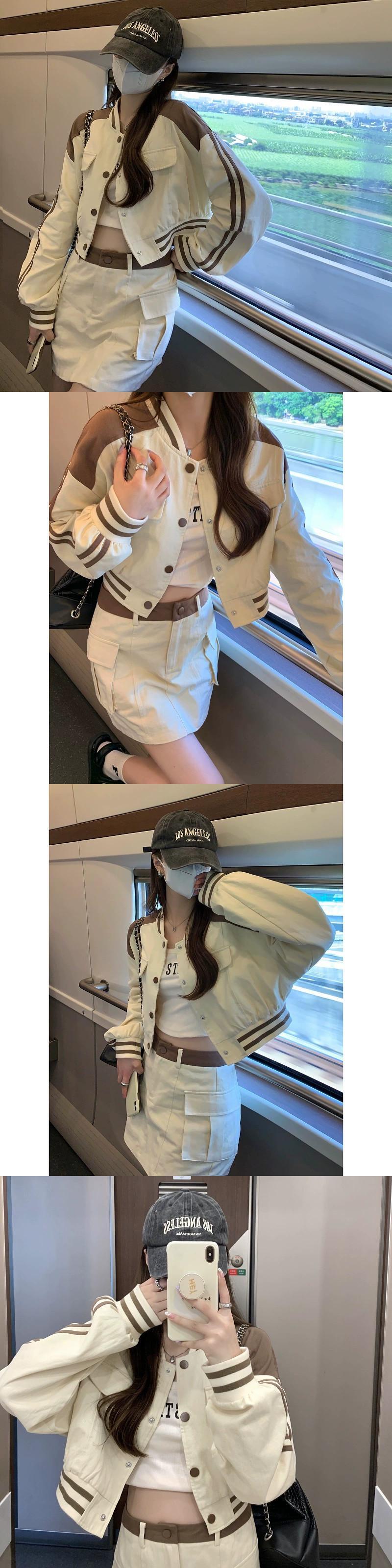 アメリカンレトロスーツスカート女性の夏 2023 新しいショート野球ユニムジャケットスリムスカートスカート 2 点セット サマー 夏物 0921982460204921