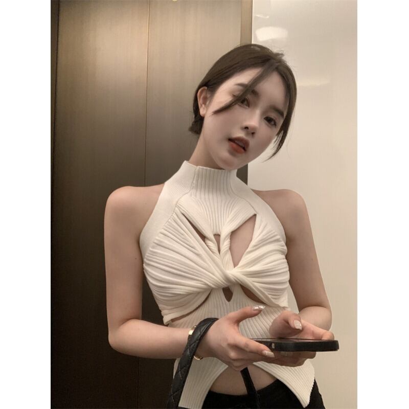 甘いクールなノースリーブニットベスト女性の夏 2023 新しい不規則な中空セクシーなショートボトムトップ 大人ガーリー スウィート キュート カジュアル サマー 夏物 0921936493771231