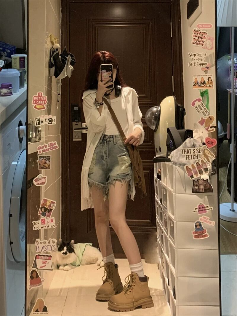 センスニッチフリンジ薄手シャツジャケットレディース2023年夏新作ゆったり万能長袖日焼け止めカーディガン ロング サマー 夏物 0921927769043860