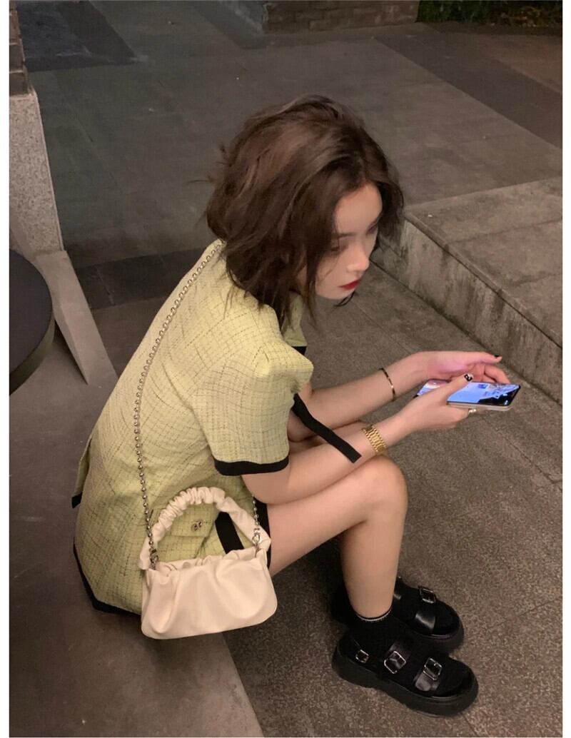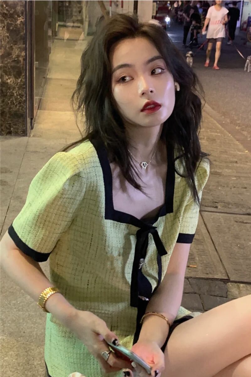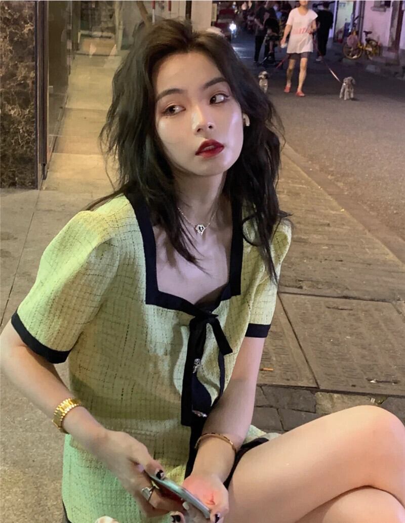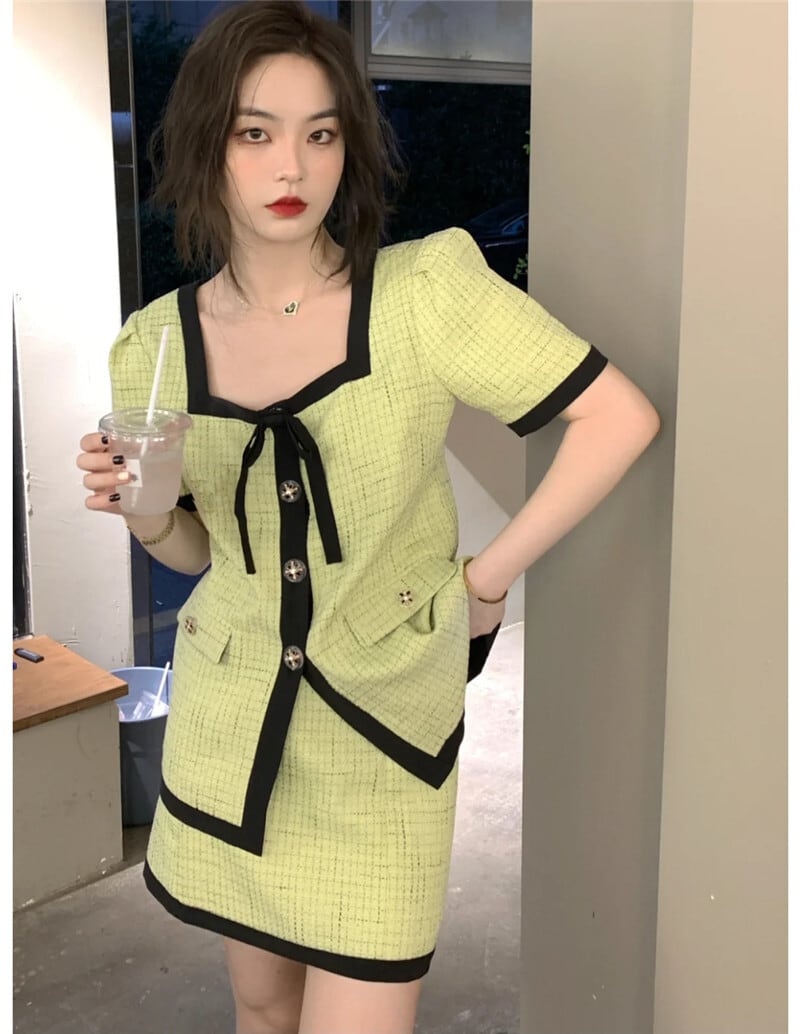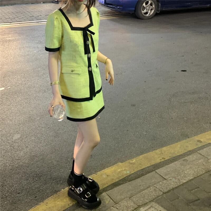 レトロな小さなフレグランススーツ女性の夏の 2023 新しいスクエアネックストラップトップスリムスカートスカートツーピーストレンディ サマー 夏物 スクウェア 0921941020186516