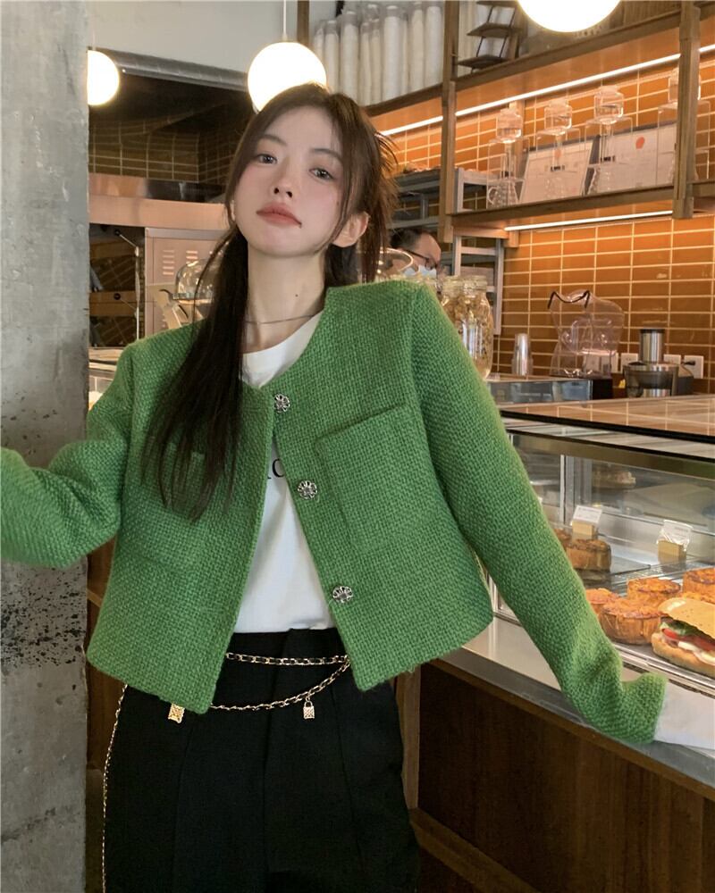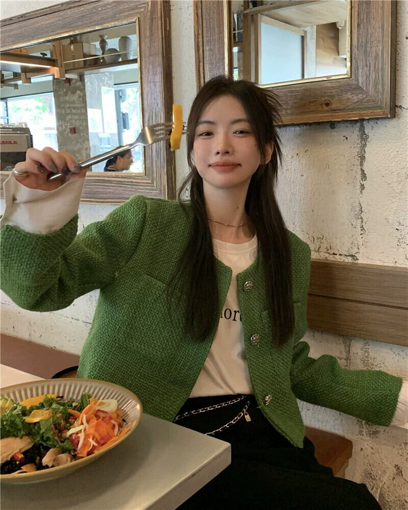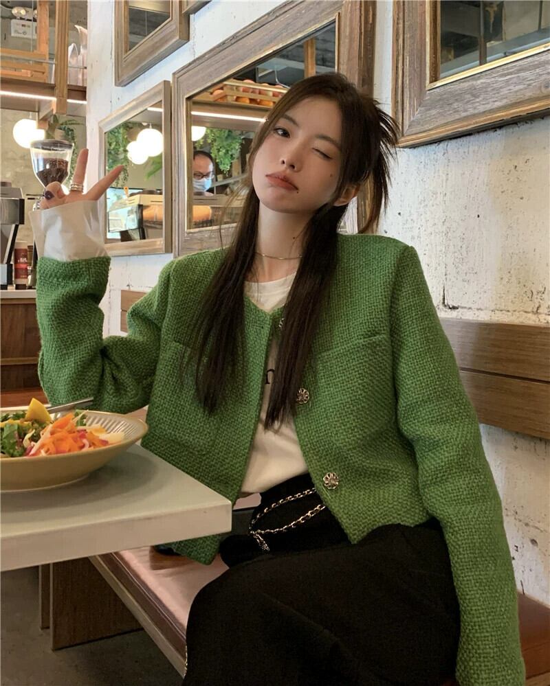 気質グリーンスモールフレグランスショートジャケットレディース2023春新作レトロ重工業デザインセンス長袖トップ潮 ロング スプリング 春物 0921983914688874