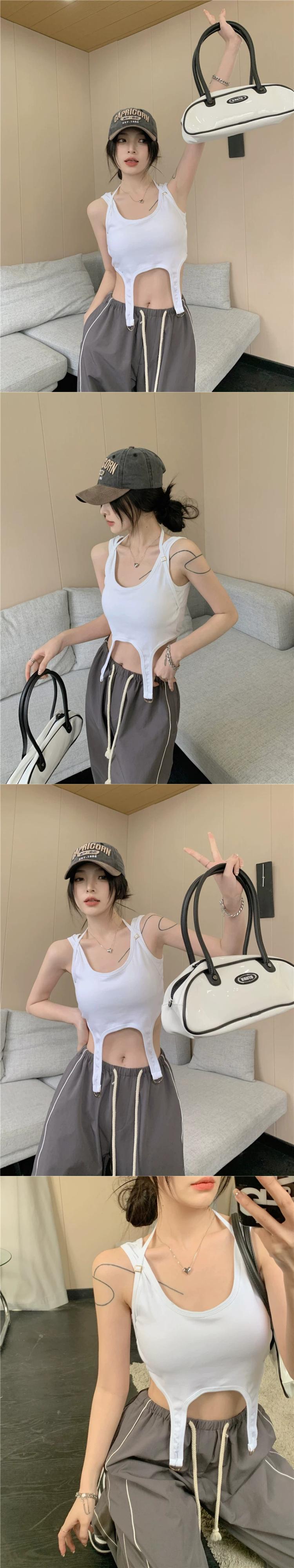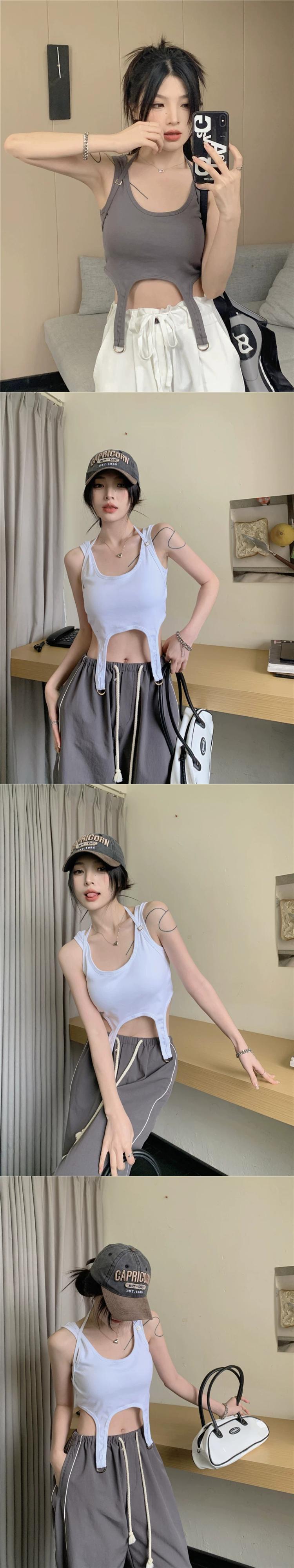 甘くてクールな U ネックキャミソール婦人服夏 2023 新しいスタイル胸パッドイン不規則なへそトップトレンド 大人ガーリー スウィート キュート カジュアル サマー 夏物 0921962865933639