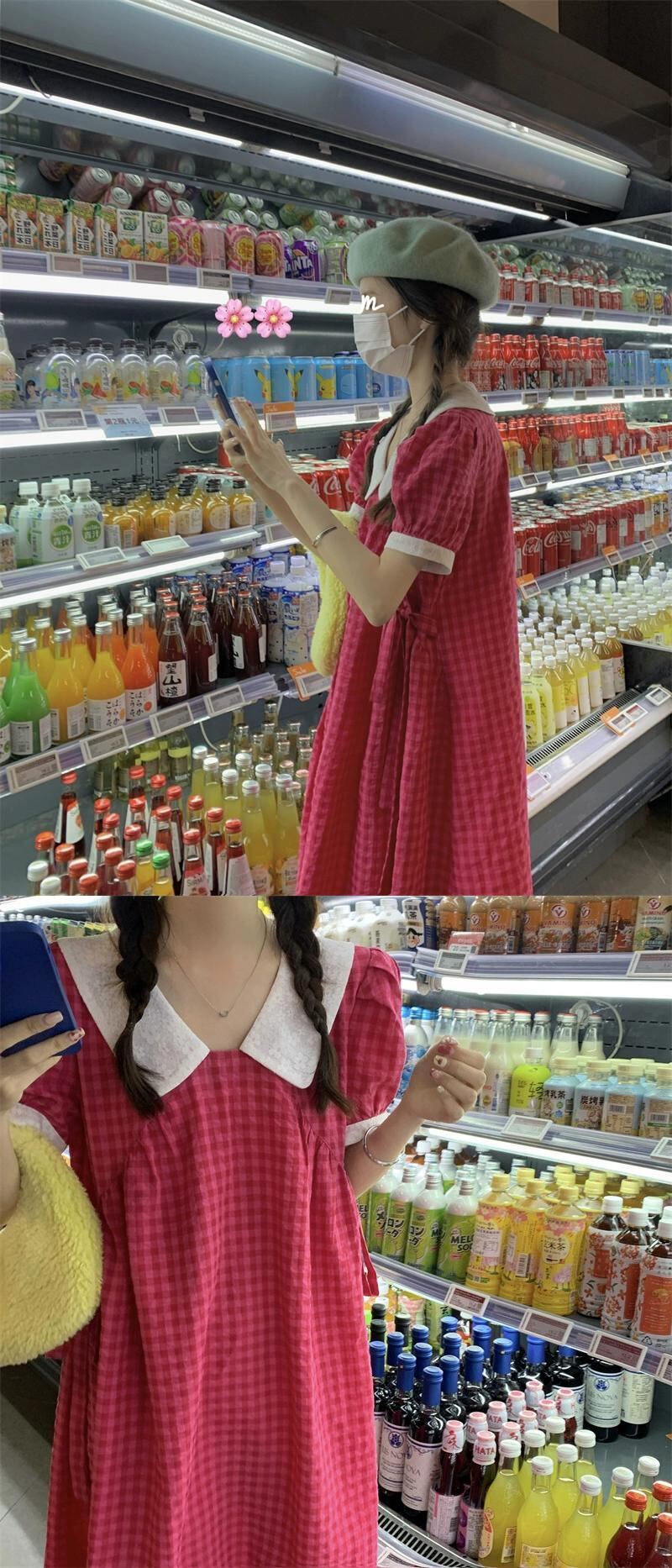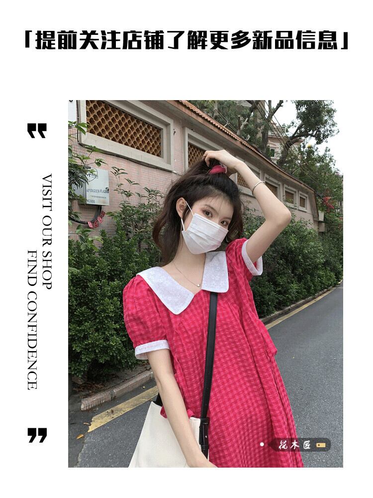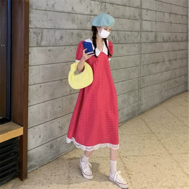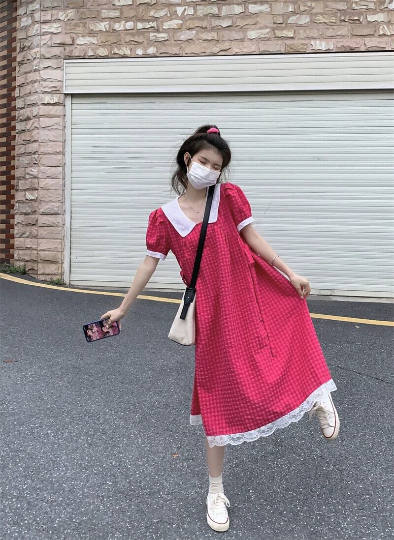 甘い風ドラゴンフルーツ人形襟ドレス女性の夏の 2023 新しいオールマッチルーズスリムミドル丈スカート 大人ガーリー スウィート キュート カジュアル サマー 夏物 0921942624362769