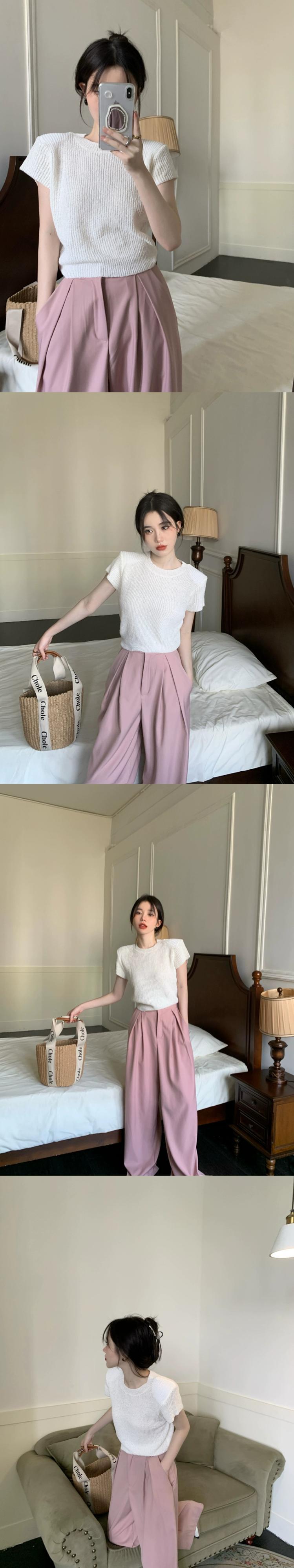 有能なソリッドカラーオールマッチ半袖ニットセーターレディース2023年春新作痩身ショートスタイルプルオーバートップインナーウェアとアウターウェア付き スプリング 春物 0921997719183685