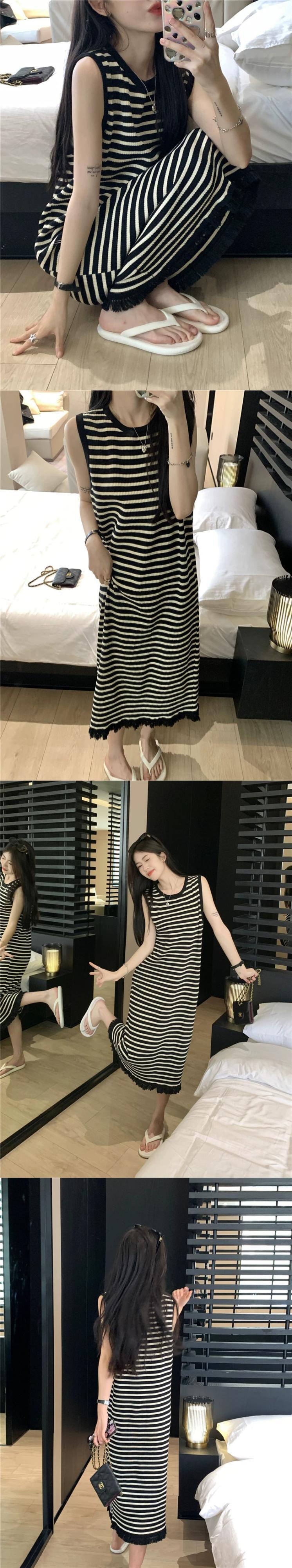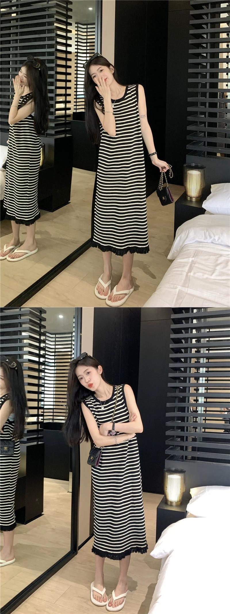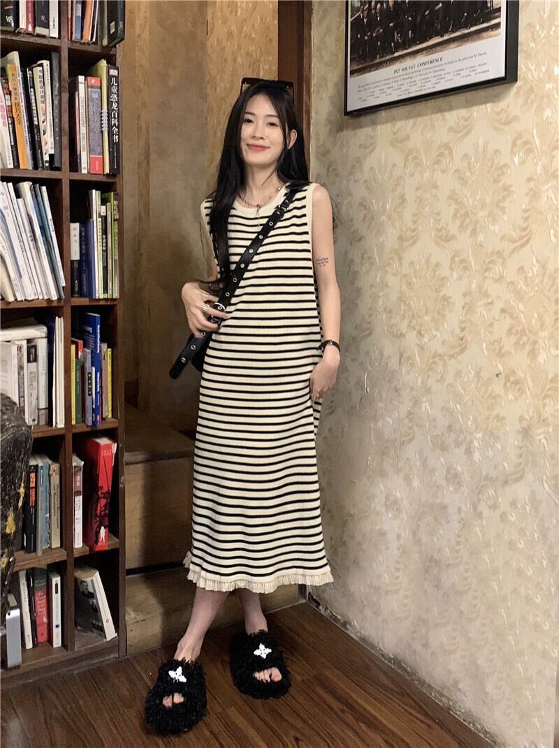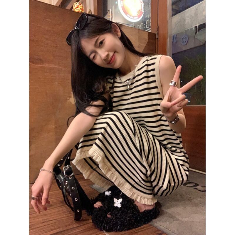 コントラストカラーのストライプのノースリーブニットベストドレス女性の夏の 2023 新しいオールマッチルーズスリムテルスカート サマー 夏物 0921962387783072