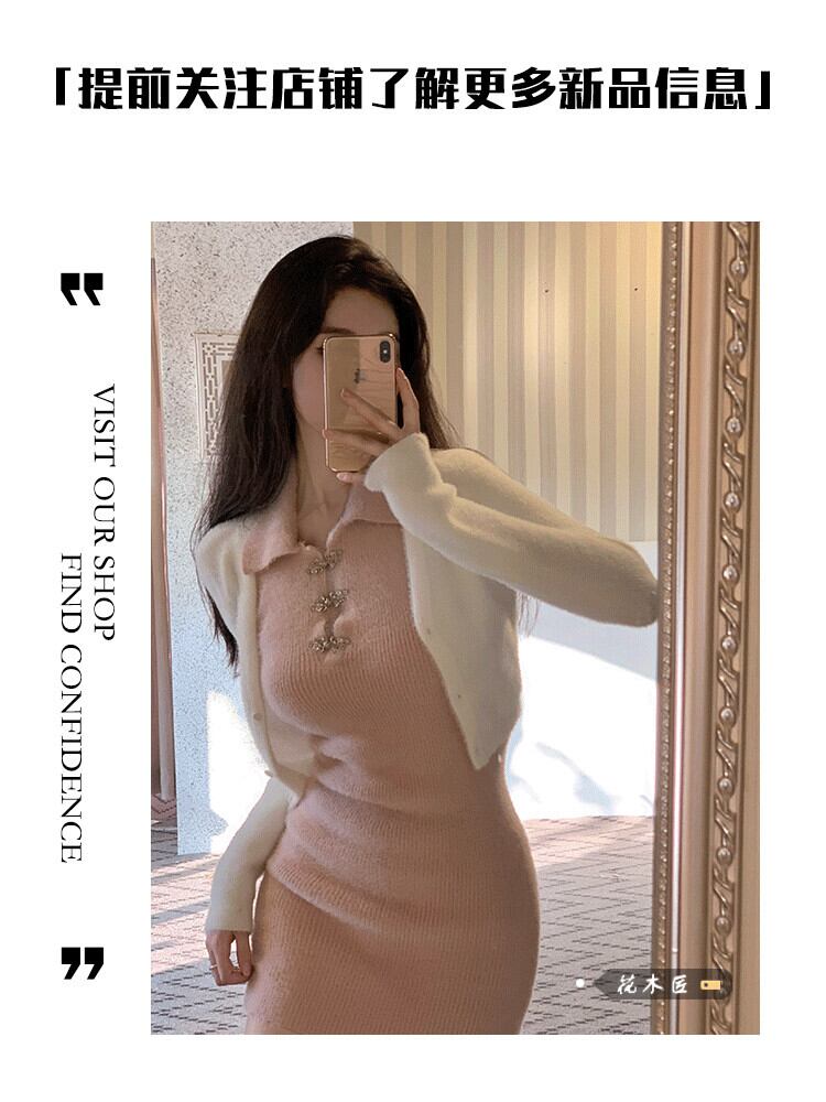 純粋な欲望模造ミンクの毛皮のファッションスーツ女性 2023 春の新しいショートコートスリムドレス 2 点セット スプリング 春物 0921924176641087