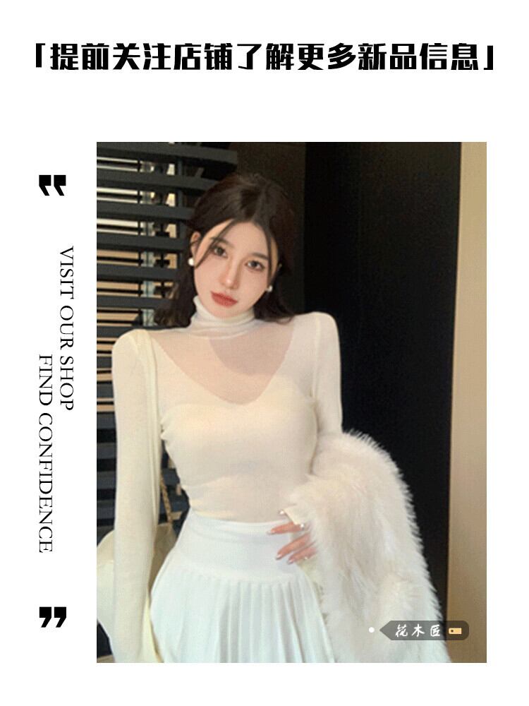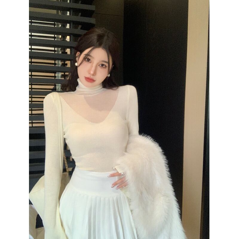 純粋な欲望デザインセンスハイネックニットセーター女性の 2023 年春と秋の新しい自己修養と薄いショートセクションボトリングシャツトップ スプリング 春物 オータム 秋物 0921922150964916