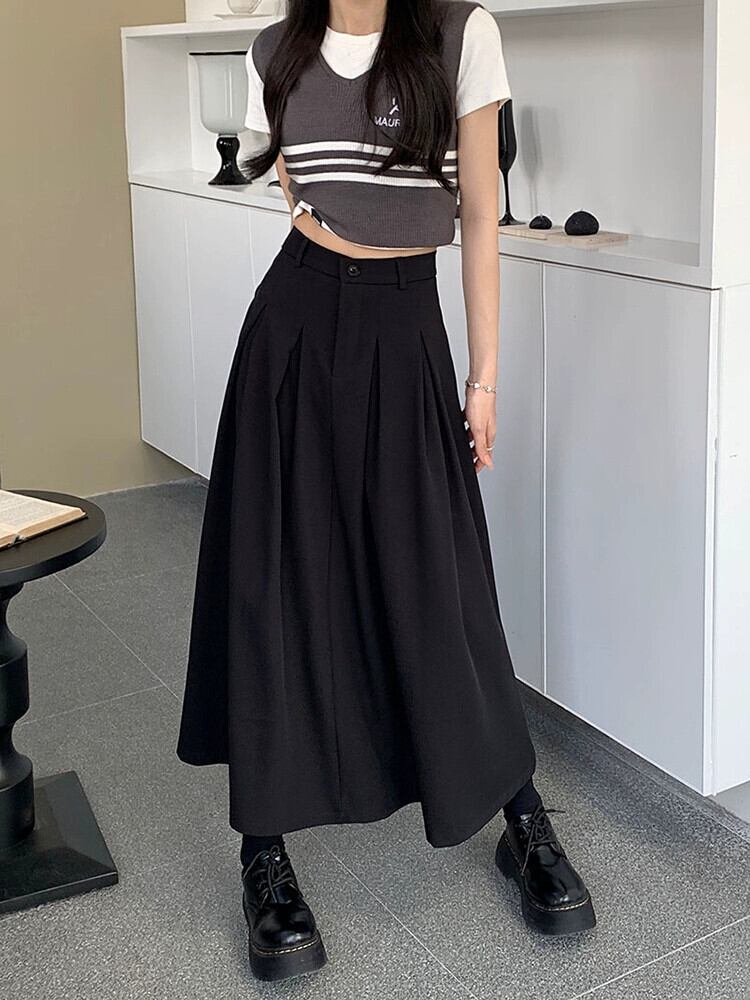 弾性ハイウエスト薄い黒のスーツスカートの女性の 2023 夏の新しい気質オールマッチ A ラインミドル丈スカート ハイウェスト ブラック エラスティック 伸縮 サマー 夏物 Aライン 0921981750985239