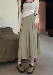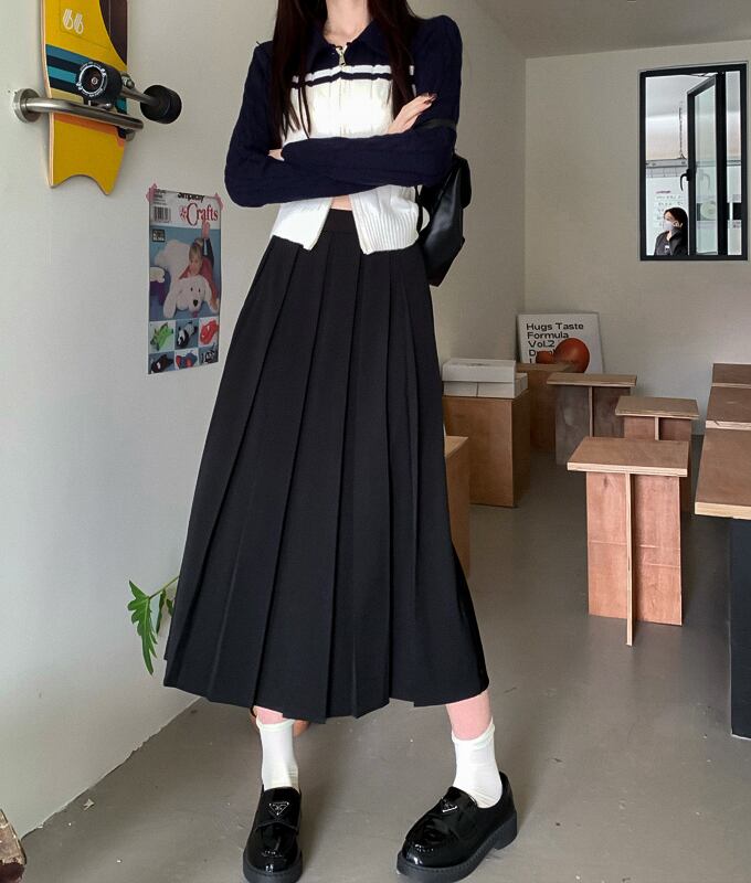 センスカレッジスタイルハイウエスト薄手スカート女性の夏の 2023 新しいオールマッチミッドレングスプリーツスカートトレンド ハイウェスト サマー 夏物 092198645816682