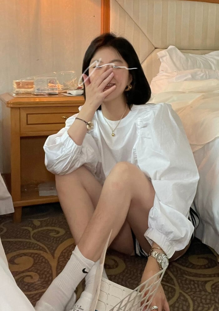 フレンチシックな白ラウンドネックランタンスリーブシャツ夏2023新しい気質デザインセンスニッチシャツトップ ホワイト サマー 夏物 Oネック 0921968348921627