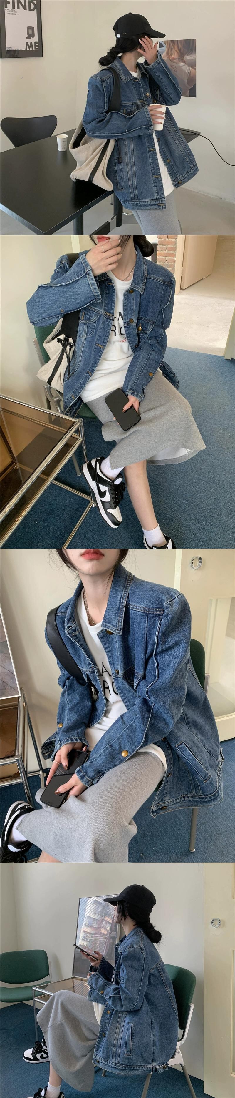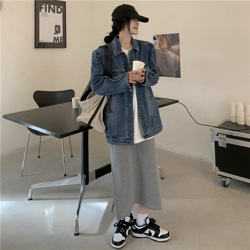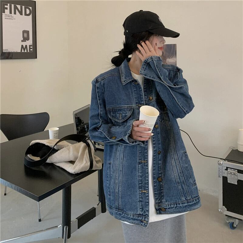 レトロフライドストリートショルダーパッドルーズデニムジャケットレディース2023春新作ミッドレングススリム長袖カーディガントップ ロング スプリング 春物 0921921997459806