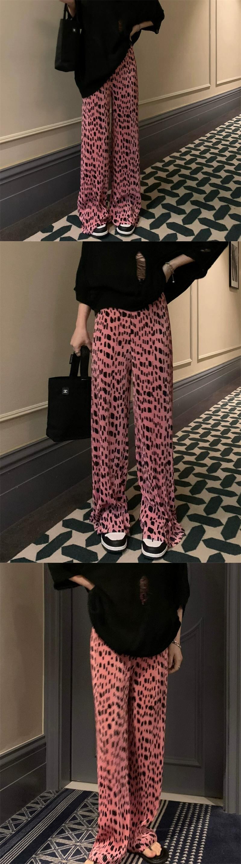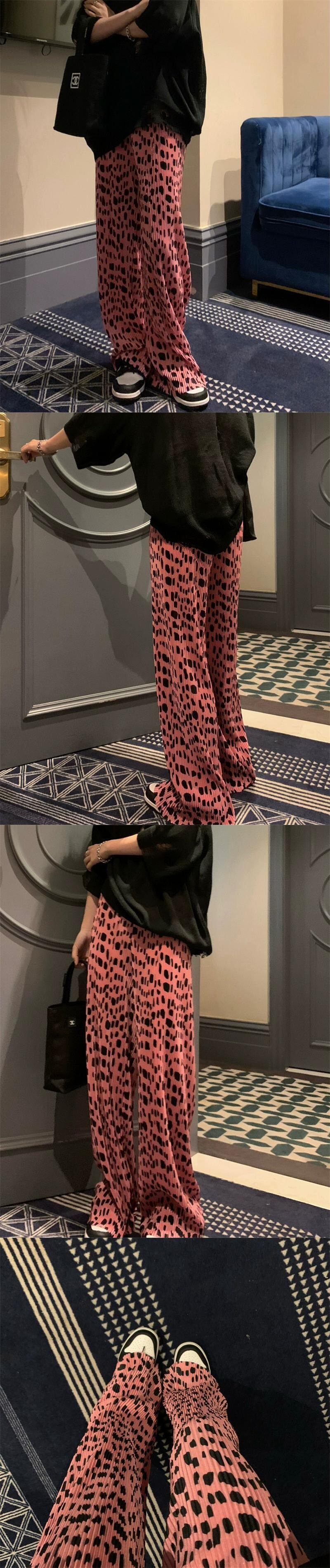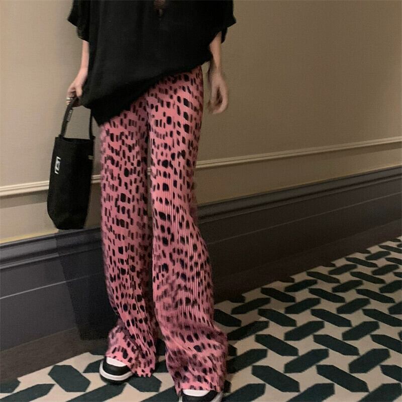 レトロピンクヒョウ柄弾性ウエストパンツ女性の夏 2023 ウエストルーズスリムオールマッチモップパンツ エラスティック 伸縮 サマー 夏物 0921986363798719