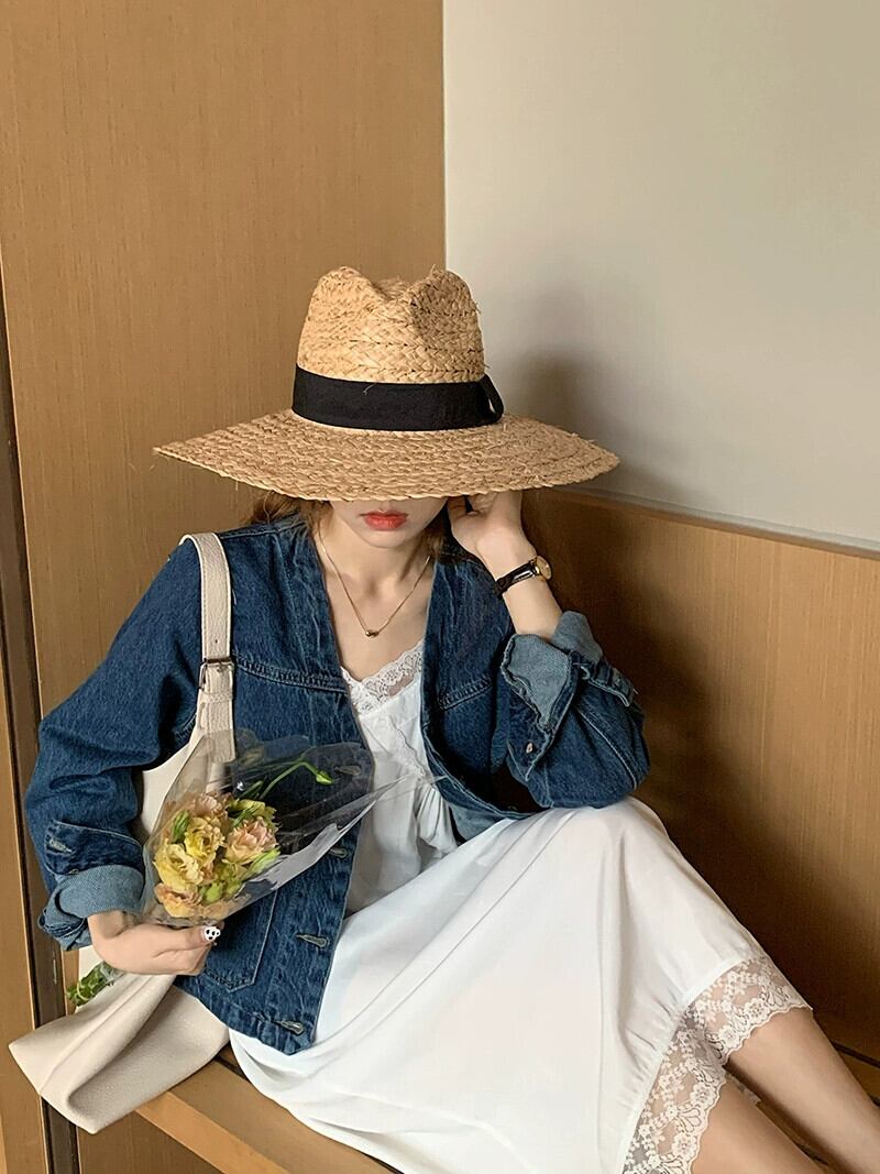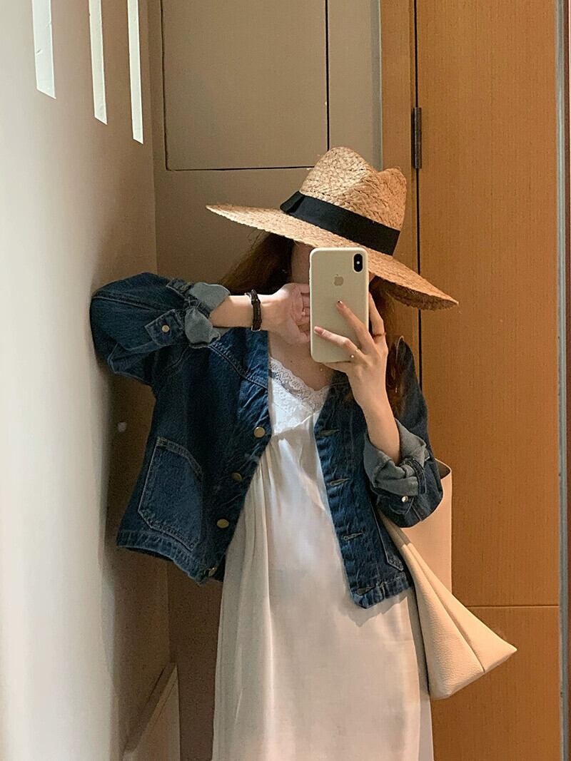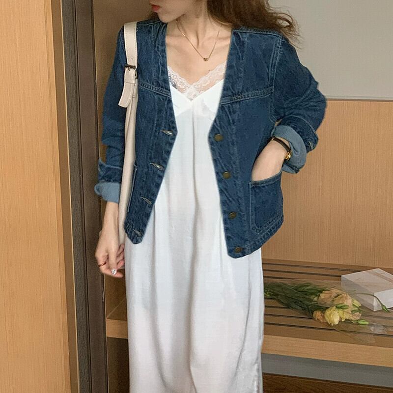 香港風のレトロな気質の V ネックデニムジャケットの女性の 2023 春の新作ゆったりと薄手のオールマッチカーディガントップ スプリング 春物 Vネック 0921988096425078