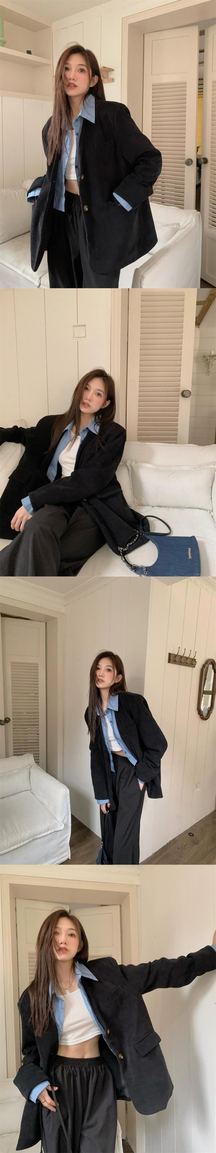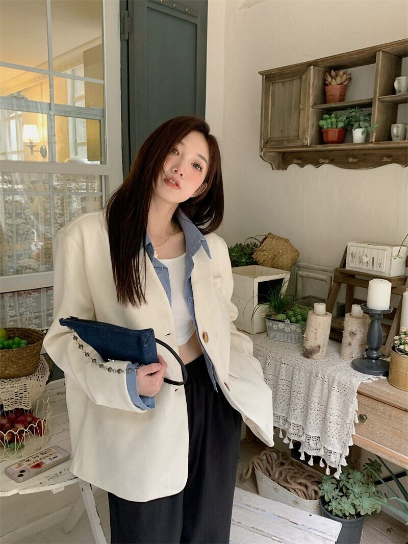 -end レトロフェイクツーピーススーツジャケットレディース 2023 春新作ルーズミッドレングス多目的スーツジャケット スプリング 春物 0921967780886331