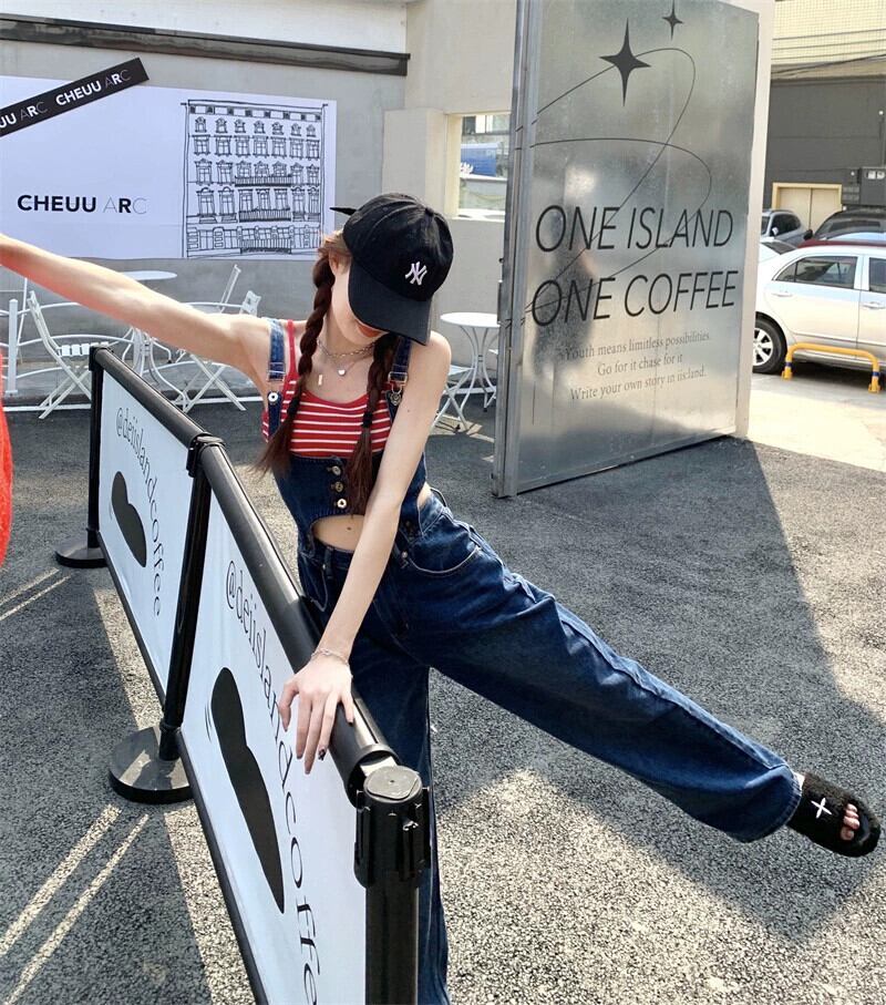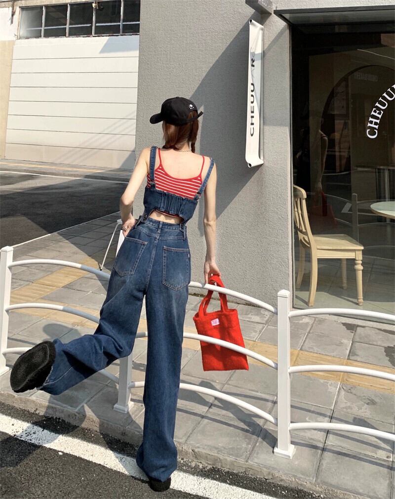 レトロベルト付きワンピースジーンズレディース2023年夏新デザインセンスゆったり薄手サスペンダーワイドパンツ サマー 夏物 ハーネス 0921924696153098