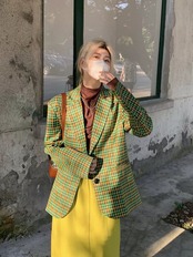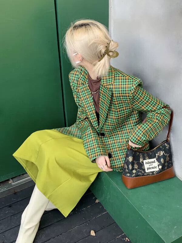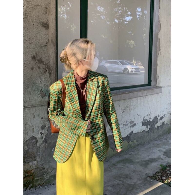 スタイルレトロチェック柄スーツジャケット女性の春 2023 新しいニッチオールマッチスーツ襟ルーズスーツジャケット スプリング 春物 092193305390170