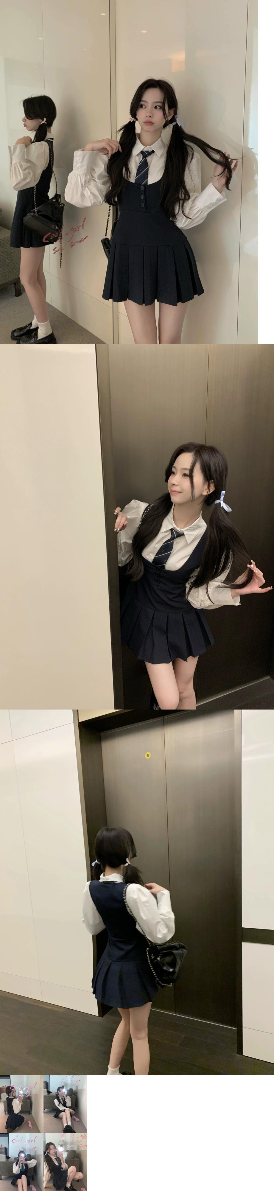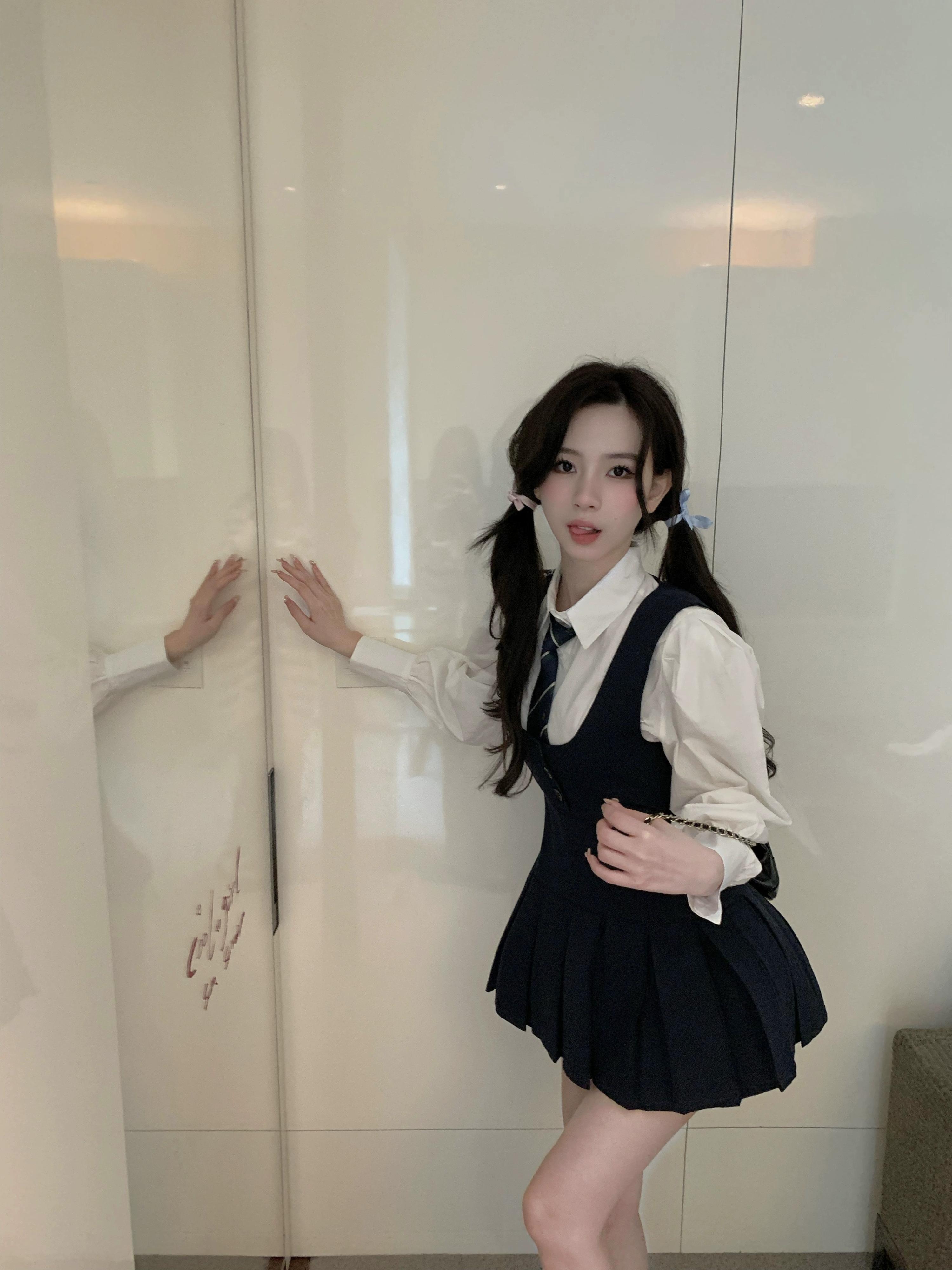 アメリカンキャンパスドラマカレッジスタイルjkユニムスーツ女性サマーシャツウエストストラップスカート2点セット 夏物 0921962300336844