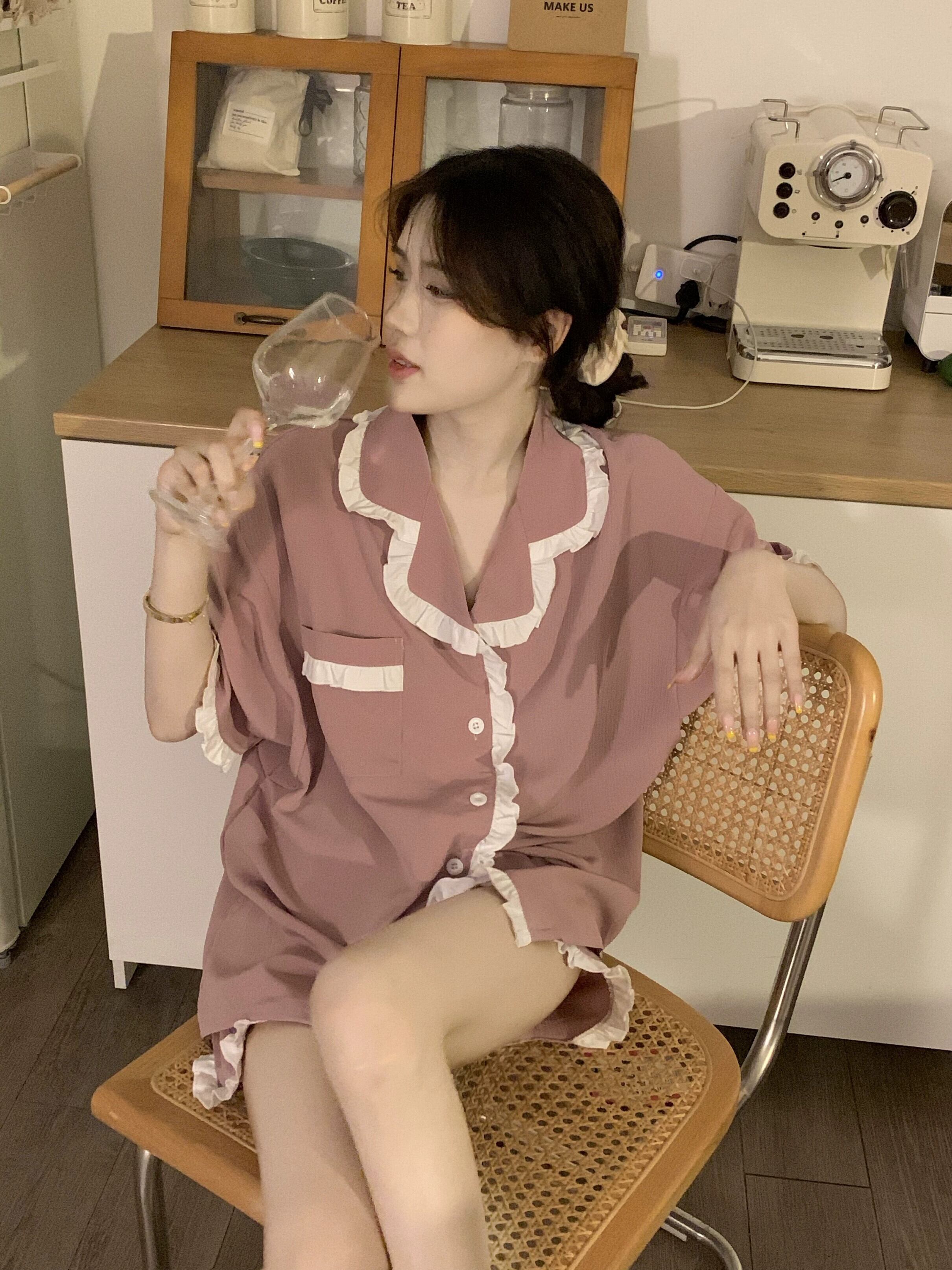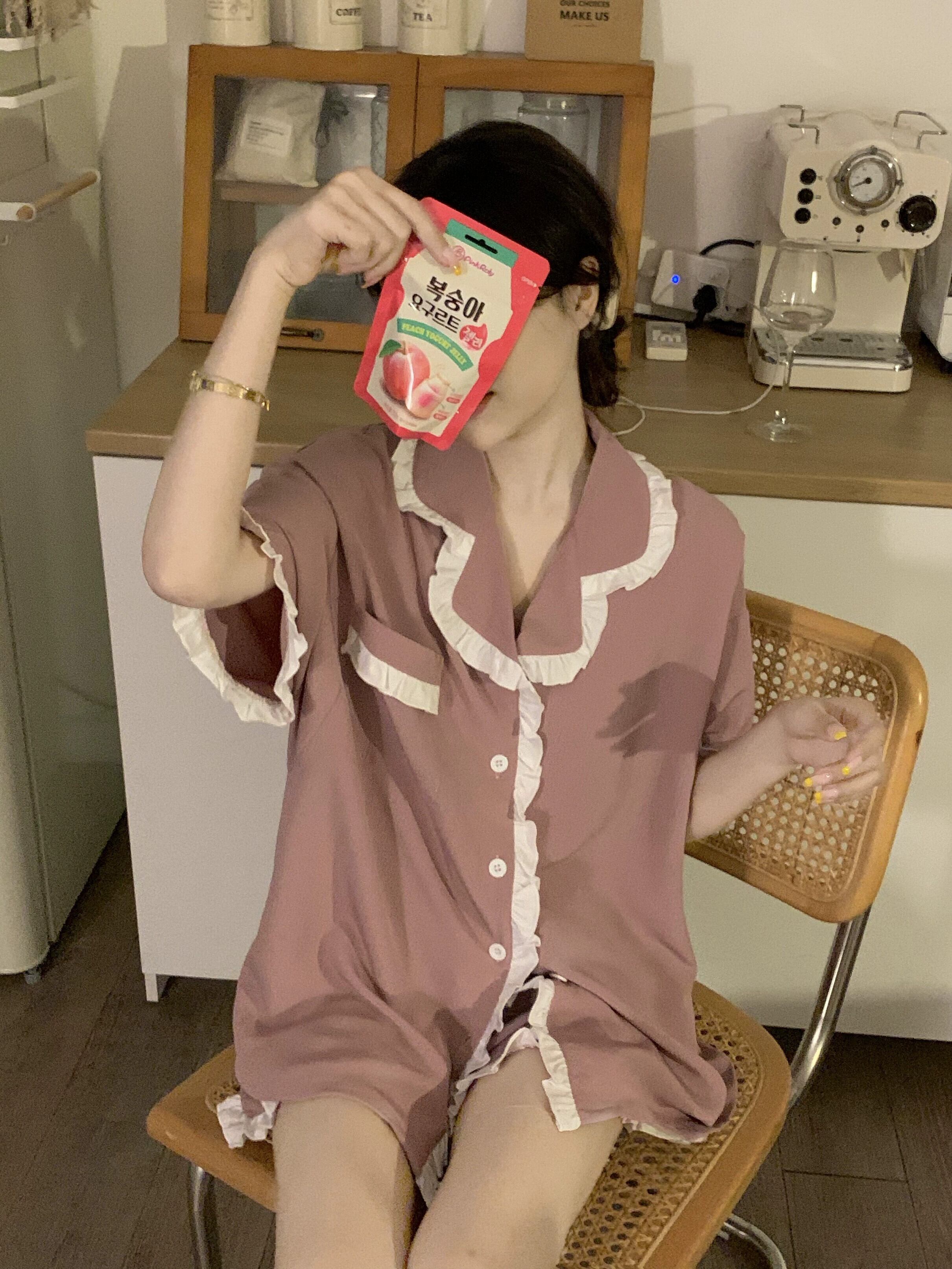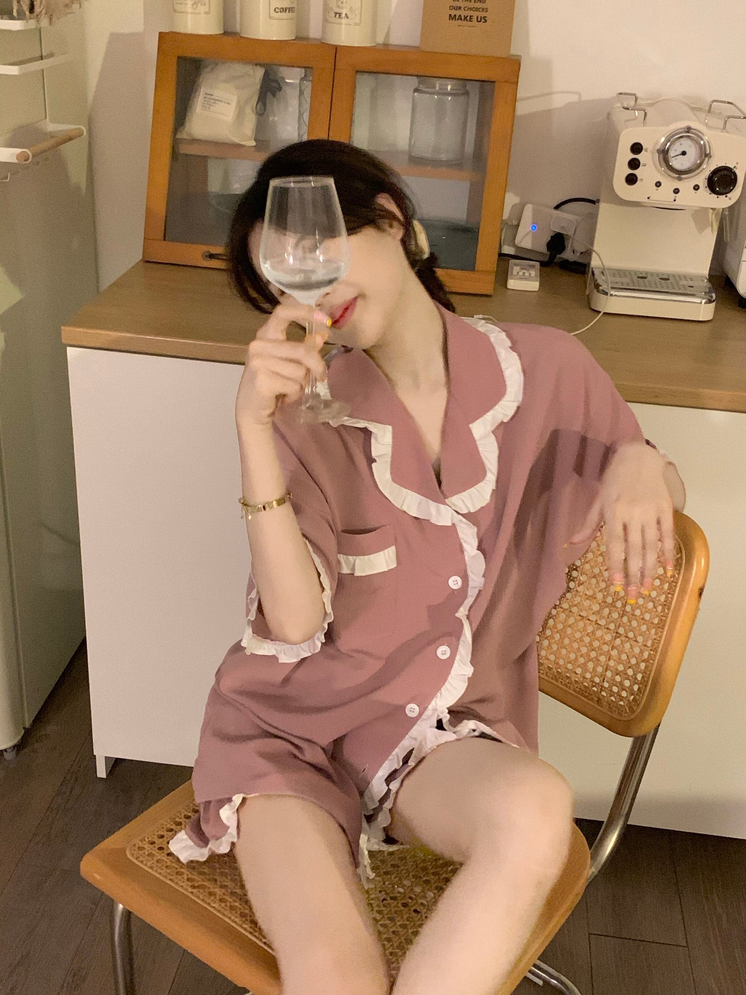 甘菌レース人形襟半袖パジャマセット女性の夏のパジャマショーツカジュアルホームサービス 2 点セット 大人ガーリー スウィート キュート サマー 夏物 ブルマー 0921912985603329
