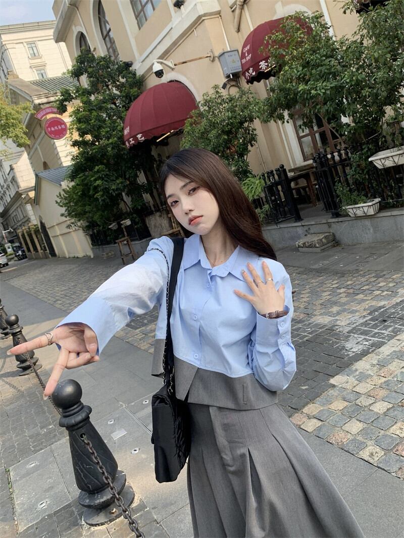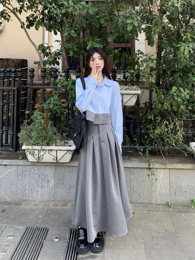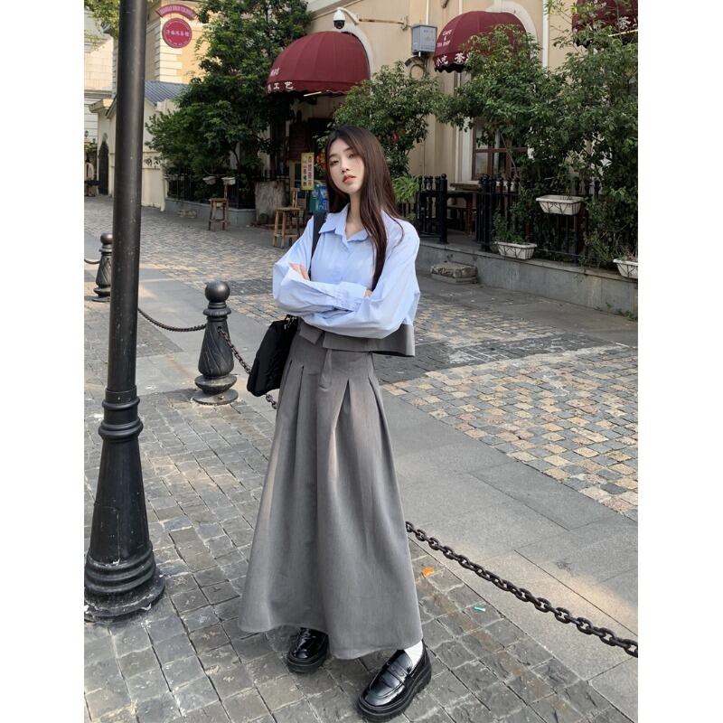 センスファッションスーツ女性 2023 春の新スタンドアップカラー長袖シャツハイウエストスーツスカート 2 点セット ハイウェスト ロング スプリング 春物 0921958305286264