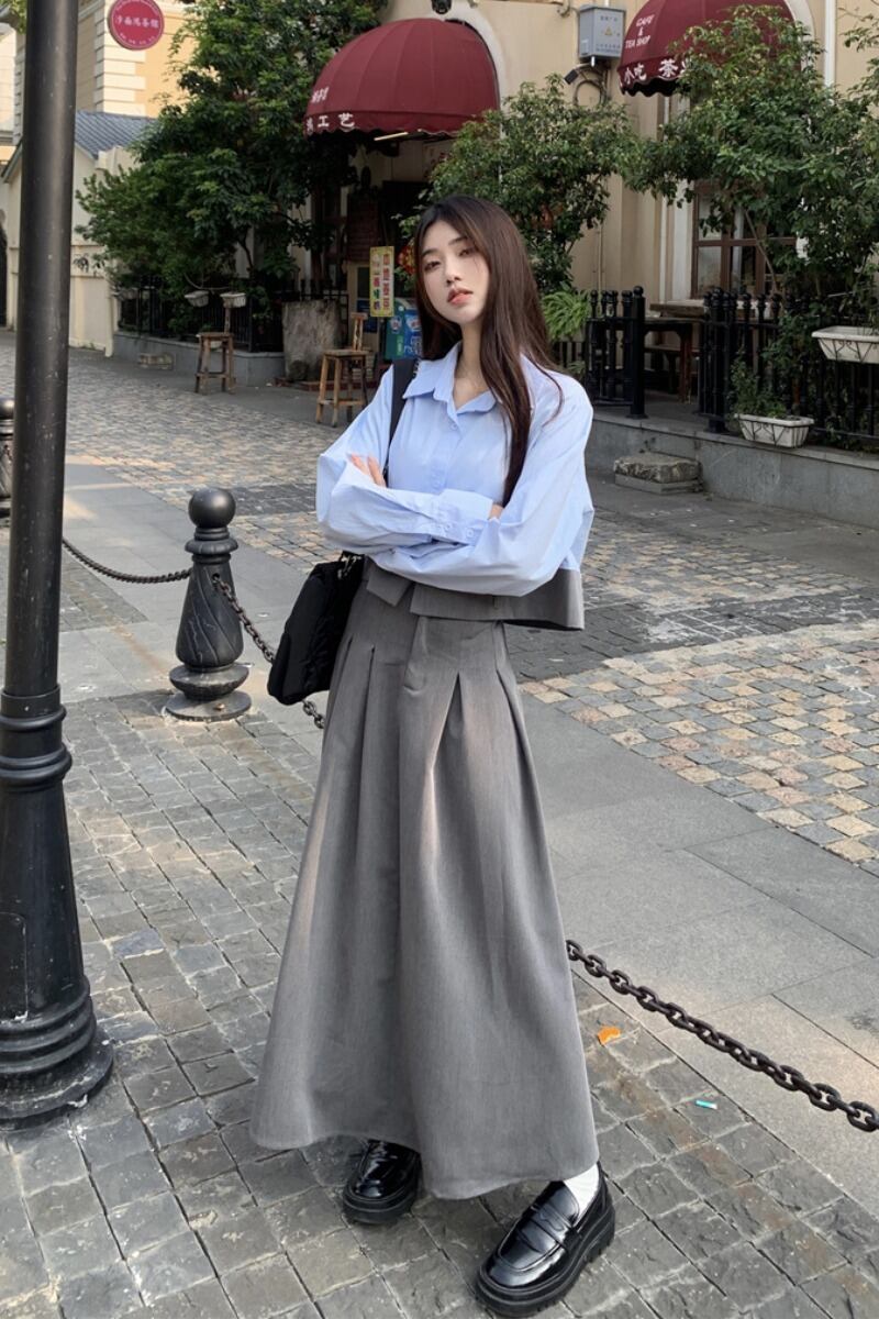 色:ライトブルーのシャツ,グレースカート