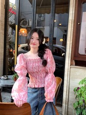 フレンチジェントル風花柄シャツレディース2023年夏新デザイン折り目感スリムスリムショートシャツ サマー 夏物 0921980029788027