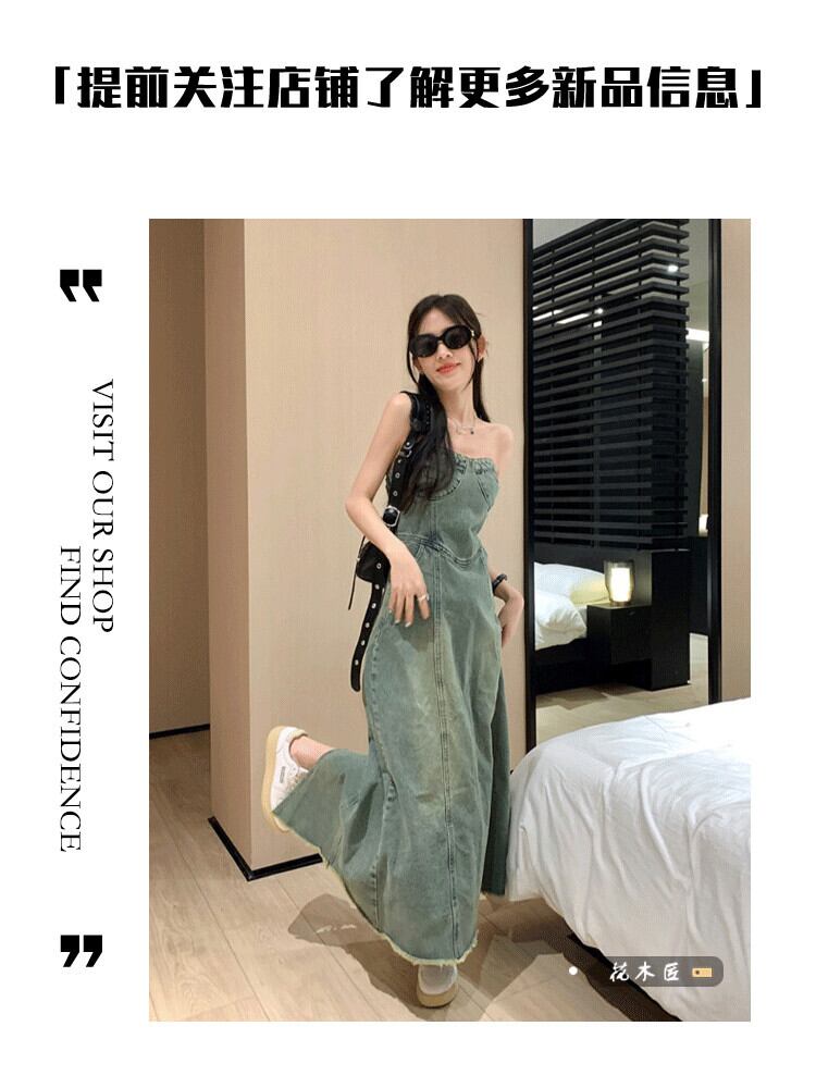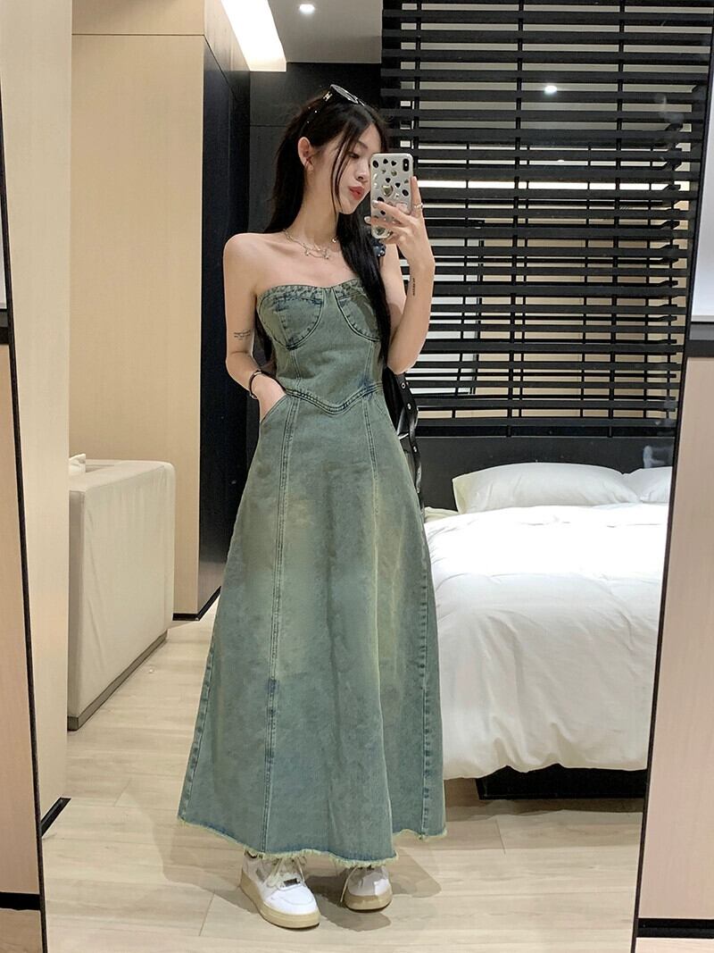 スパイスレトロチューブトップデニムドレス女性の夏の2023新しいハイエンド気質ミドル丈スカートaラインスカート サマー 夏物 0921954131497578